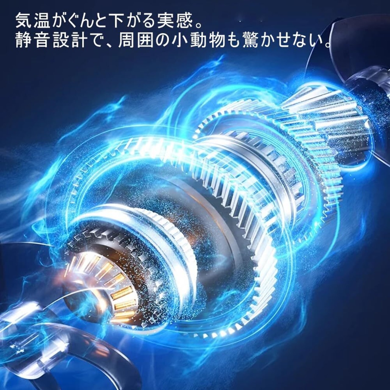 川辺の石や草地に馴染むカーキカラーで自然に溶け込み、魚に警戒されにくい。ファンの風量は驚くほどパワフルで、他の釣り人が振り返るレベルの快適さ。