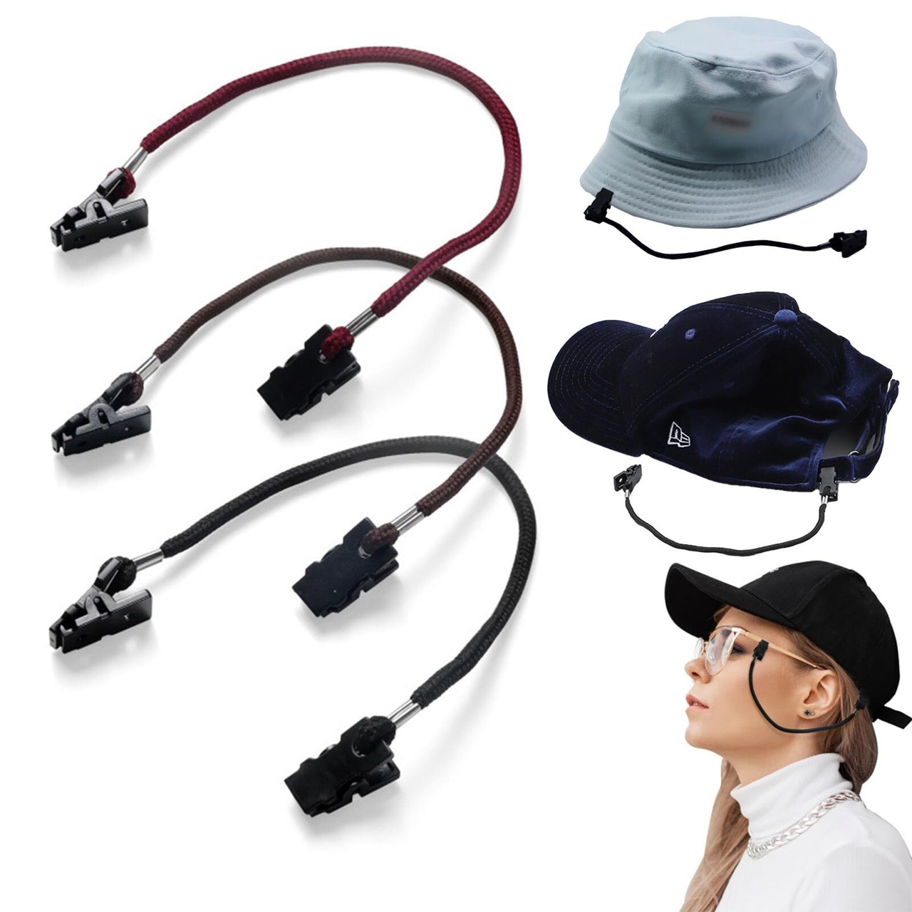 [Selinear] 帽子 クリップ 3個セット ポリエステル 防風 防除 飾り掛けロープ 簡単固定 自転車 釣り 旅行 登山アウトドア(ブラック、レッド、ブラウン)