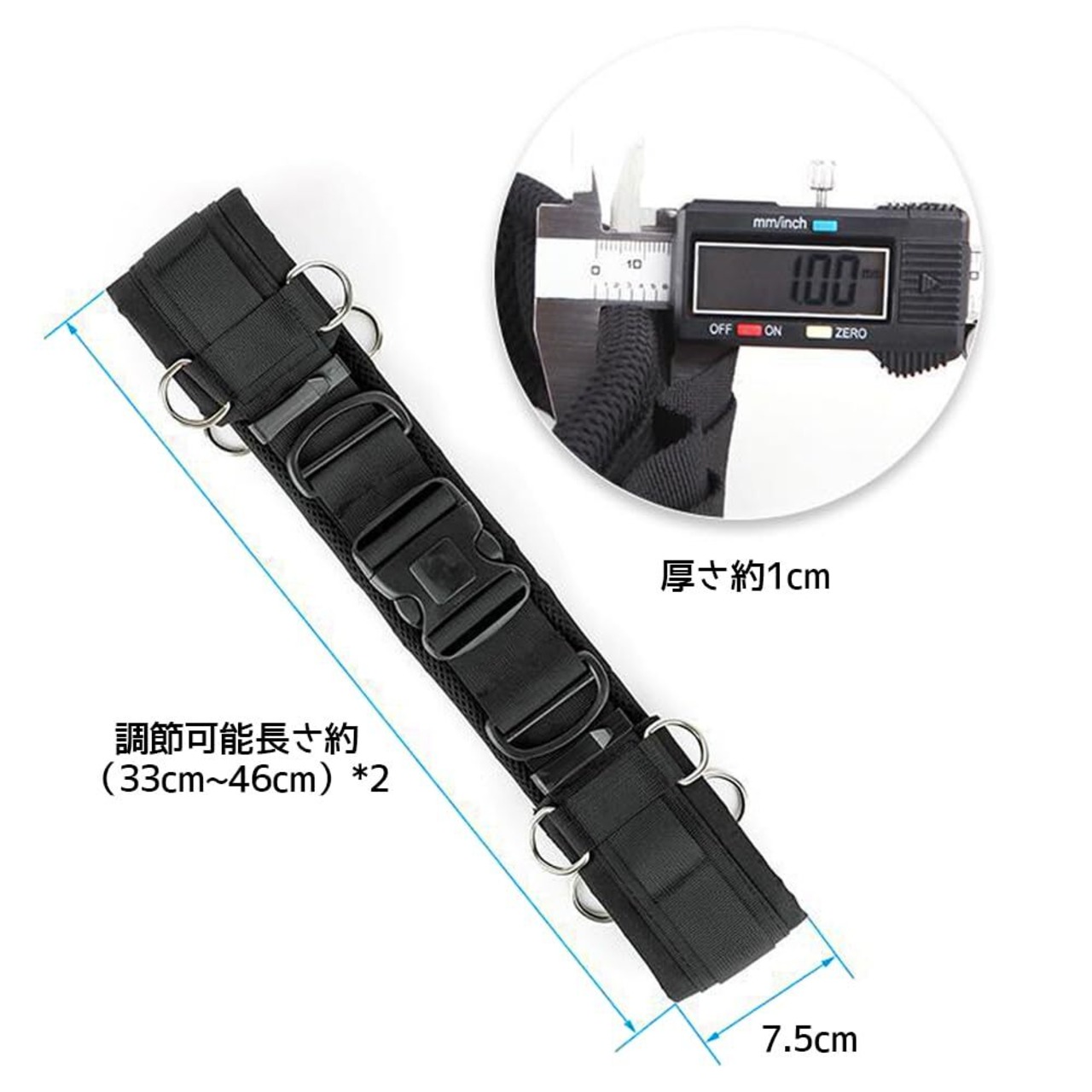 【製品サイズ】サイズ/75㎝~100㎝(調整可)、重量/210g、材質/耐摩擦ナイロン製。