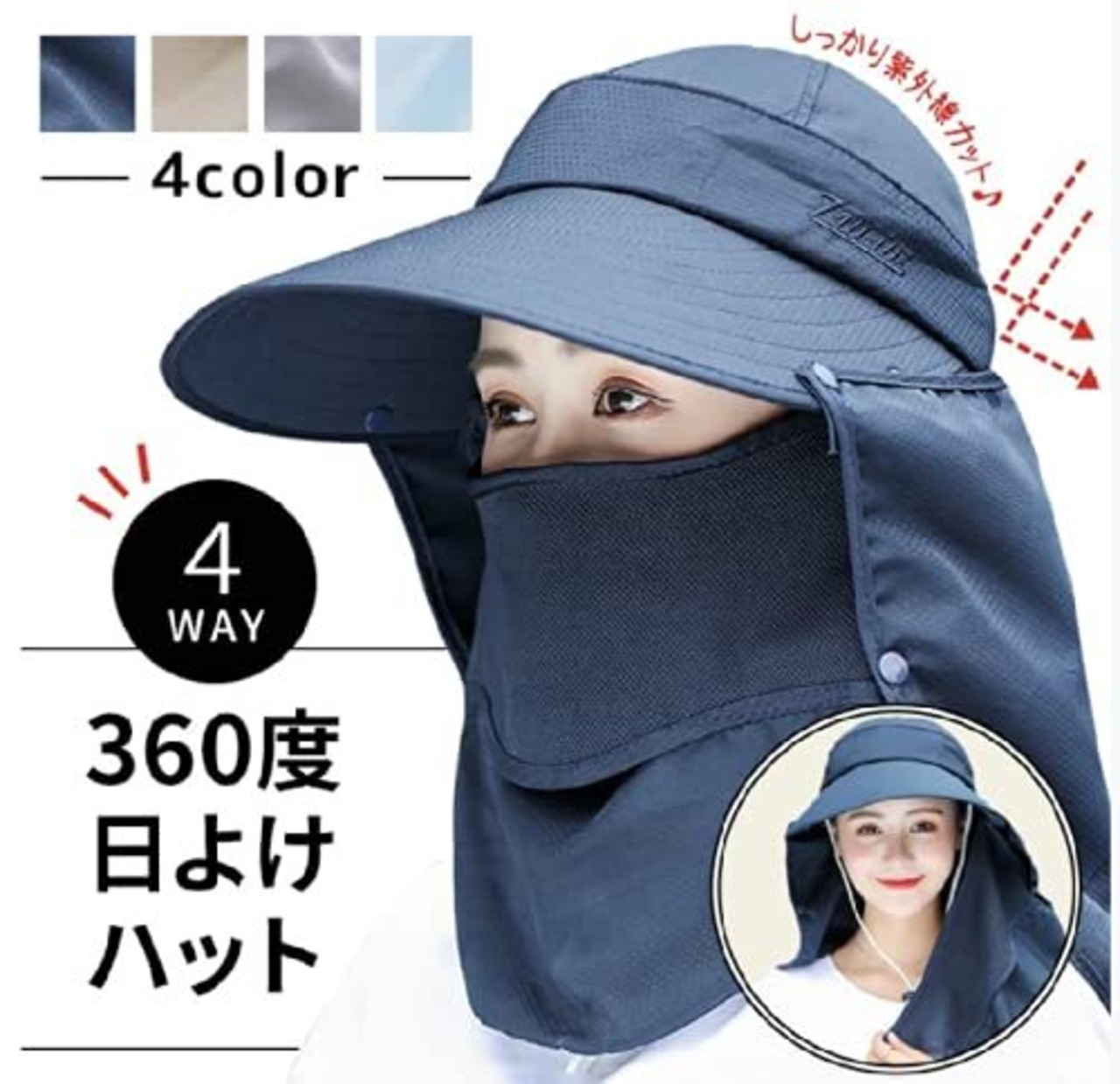 [Happyshoppingtime] ガーデニング 帽子 農作業帽子レディース 農園帽 サンバイザー UVカット つば広 折りたたみ 紫外線対策 日よけ 首ガード おしゃれ帽子 フェイスカバー 園芸 釣り アウトドア