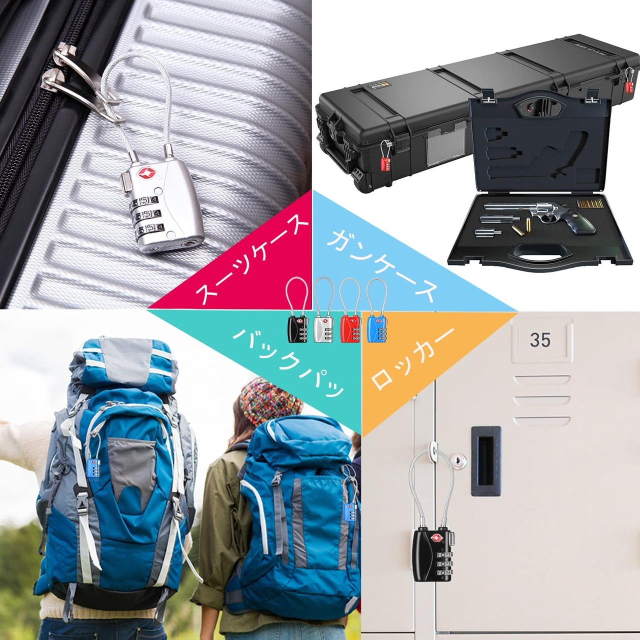 ZHEGE TSAロック 南京錠 ワイヤータイプ 旅行用 安心 防犯グッズ 3桁ダイヤル式ロック(ブラック)