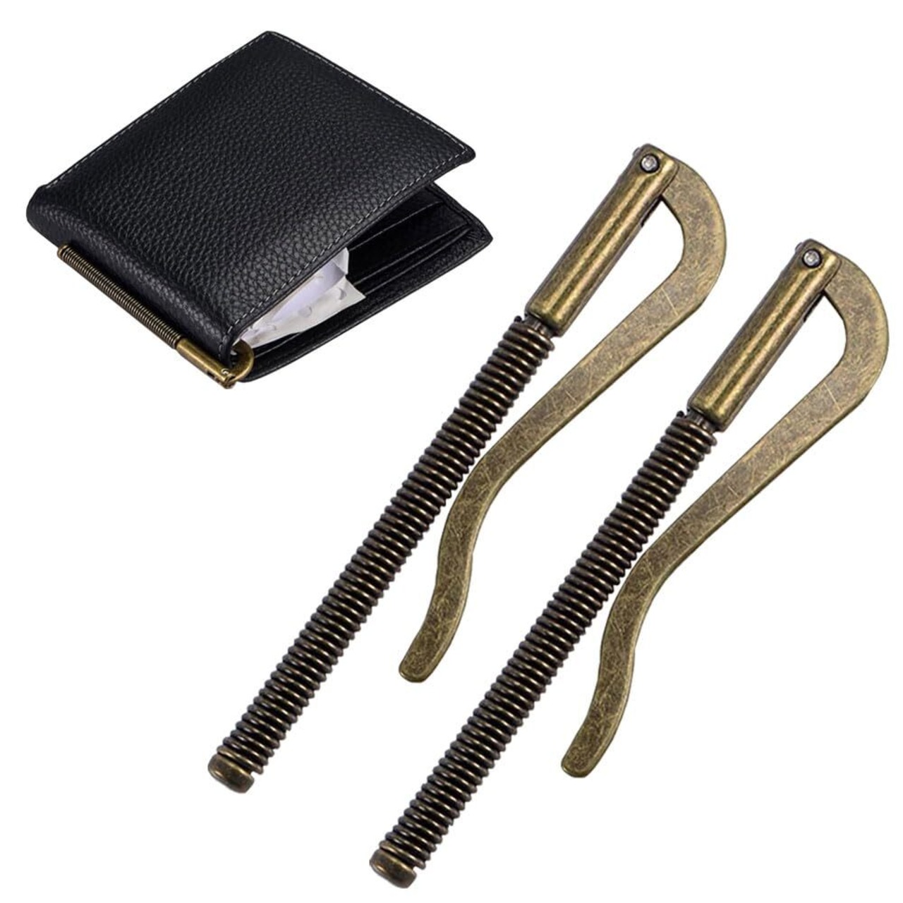 セット内容:財布ホルダー 金属製スプリング2本セット,色だ:ブロンズ色サイズ:クリップの長さは約80mm;ほとんどの財布に簡単に収まる。
