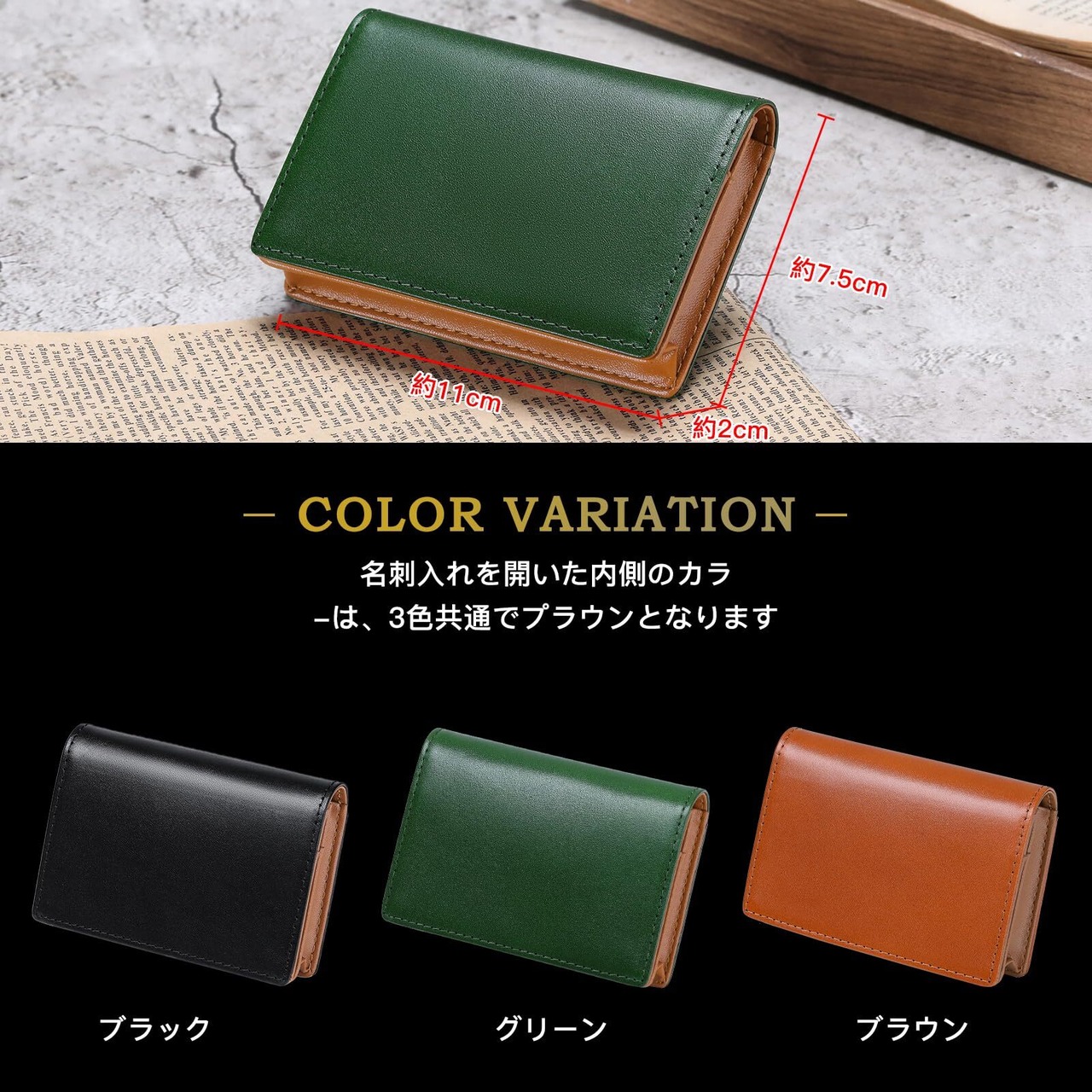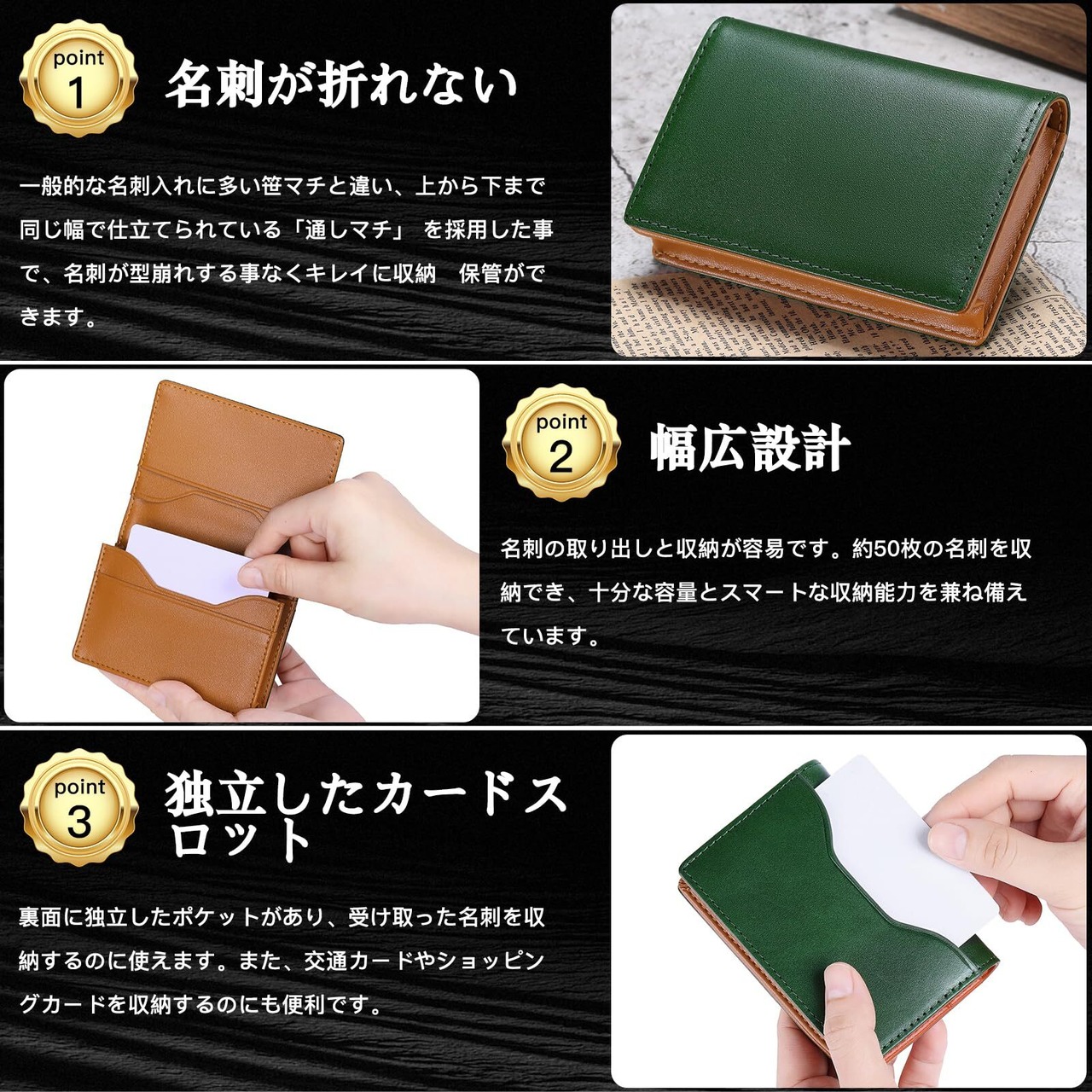 [MORFFEYIA]名刺入れ メンズ 栃木レザー 本革 名刺ケース 大容量 50枚 男女兼用 (グリーン)