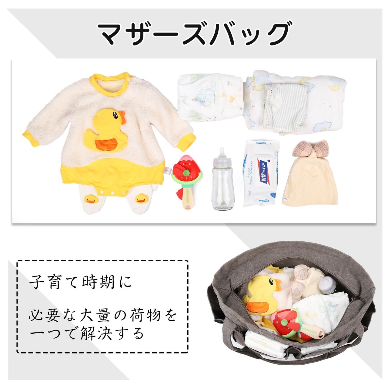 【収納力抜群】ポケットの収納箇所が多く、タオルやベットボトル、傘などもポケットに入れるので、使いたい時はすぐ取り出せるとても便利です!おむつ、着替え、哺乳瓶など、たくさん収納できて、マザーズバッグとしてもいいです。