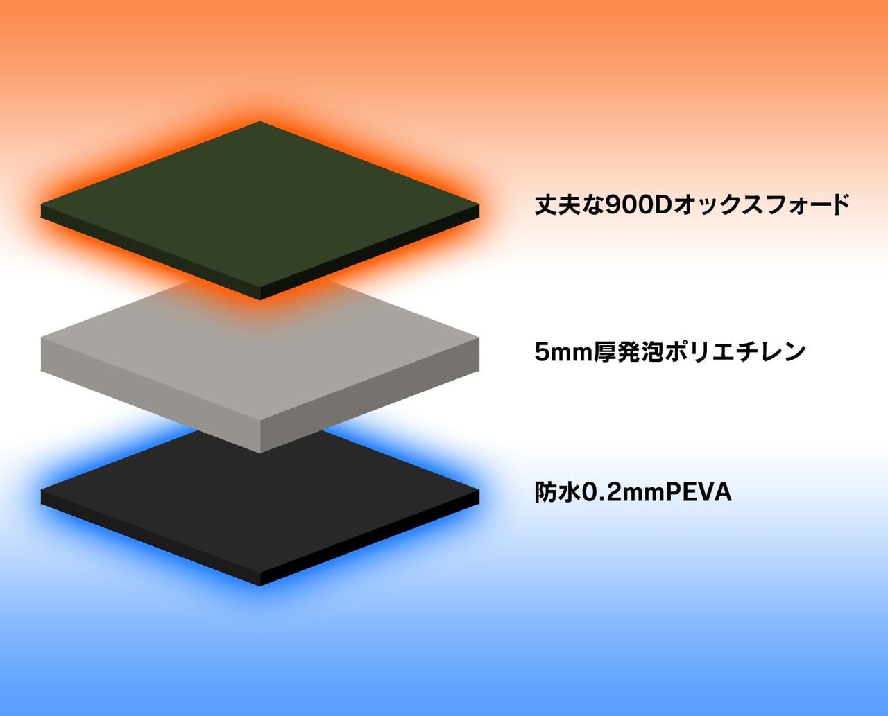 【強力な保温・保冷のヒミツは3層構造】丈夫で摩擦や汚れにも強い900Dオックスフォードナイロンを外生地に使用し、クッション性のある5mm厚発泡ポリエチレン、防水0.2mmPEVAの3層構造だから、冷たいものは冷たいまま、 温かいものは温かいまま、長時間持続します。