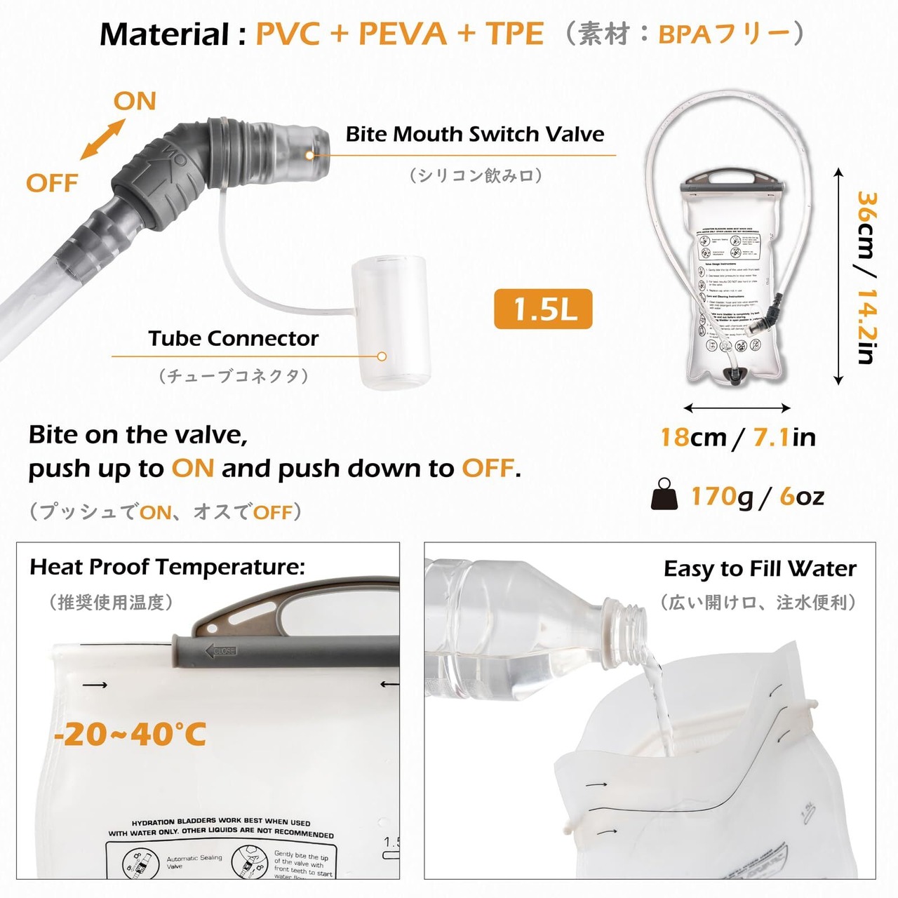 【走りながら水分補給】背面に1.5Lハイドレーションパック専用スペースを備え、走行中も給水がスムーズ。チューブを通せば、動きながらでもスムーズに水が飲めます