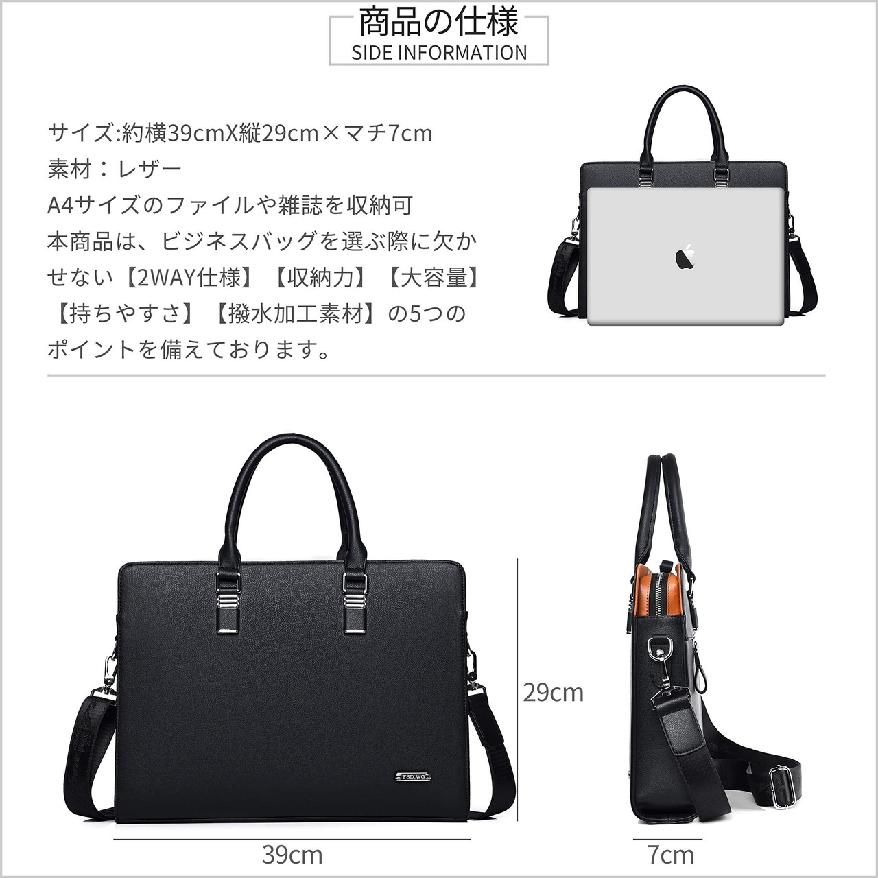 FSDWG ビジネスバッグ メンズ 本革 トートバッグ 通勤バッグ 出張 2way A4 大容量 防水 軽量 人気 丈夫 ブラック ブルー