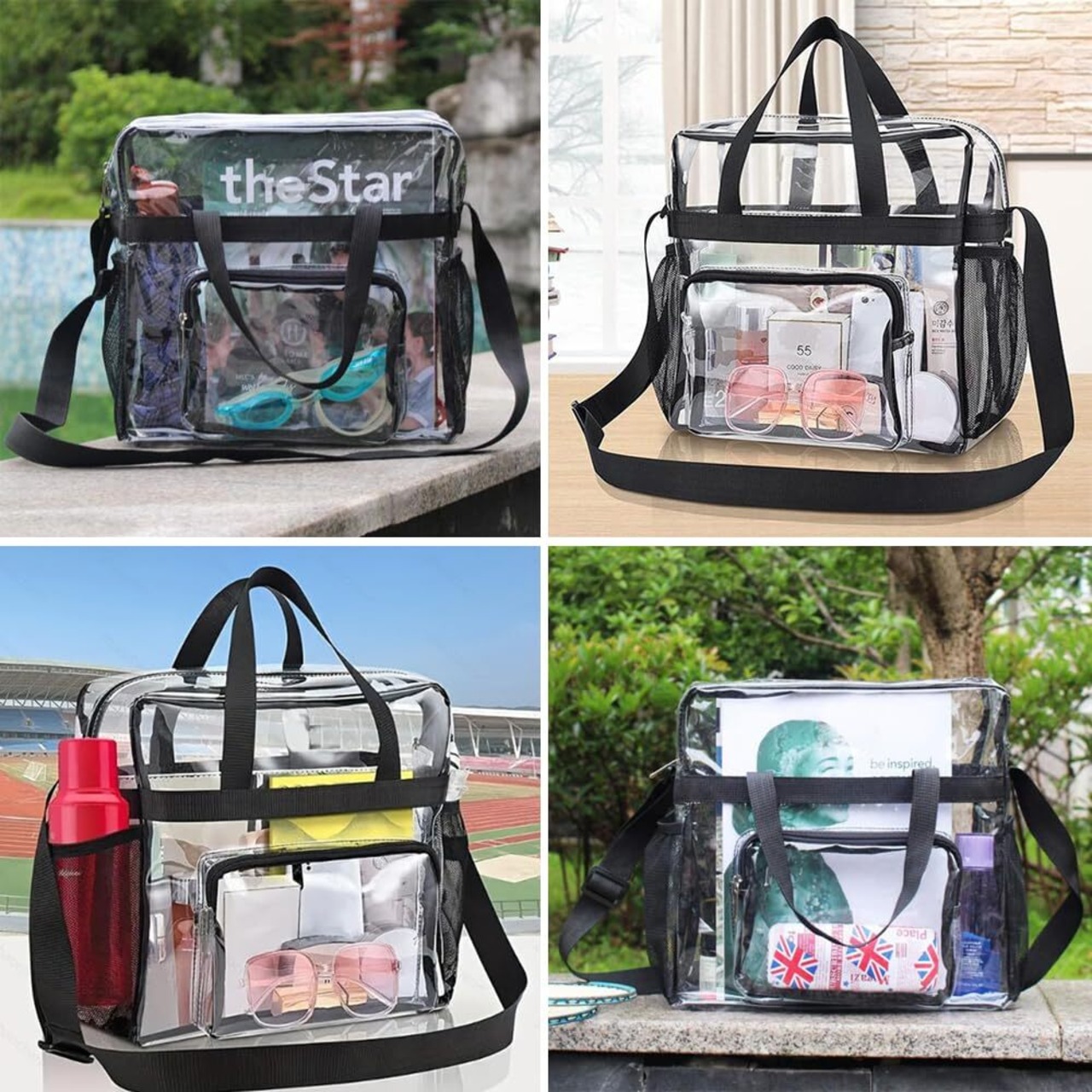 [サムコス] 仕事用透明バ ッグ PVCクリア 大容量ハンドバ ッグ 物入れ袋 防水 軽量 透明 肩掛け 痛バ ッグ 見せバッ グ 斜め掛けバッグ 通勤/通学/旅行/外出/ビーチ/スポーツ 男女兼用