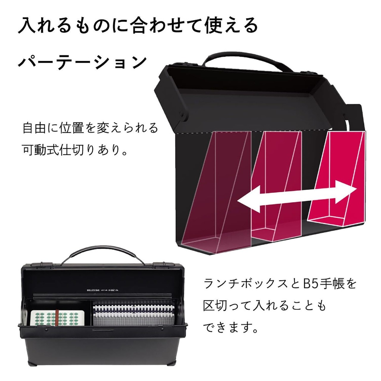 【商品】 使いやすい可動式仕切りが付いた幅広タイプ。
