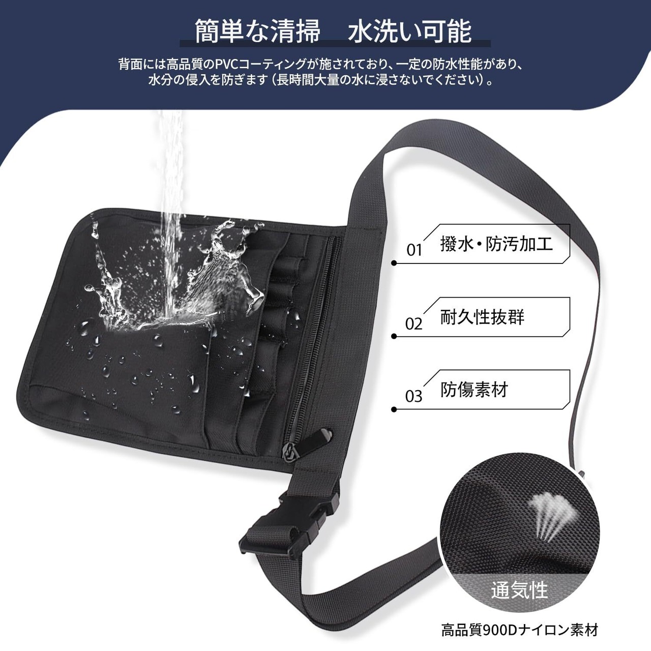 ️【防水性と快適性】背面には高品質のPVCコーティングが施されており、一定の防水性能があり、水分の侵入を防ぎます(長時間大量の水に浸さないでください)。また、優れた弾力性と防シワ性を持ち、室内外問わず快適な着用体験を提供し、長時間使用しても整然とした状態を保ちます。