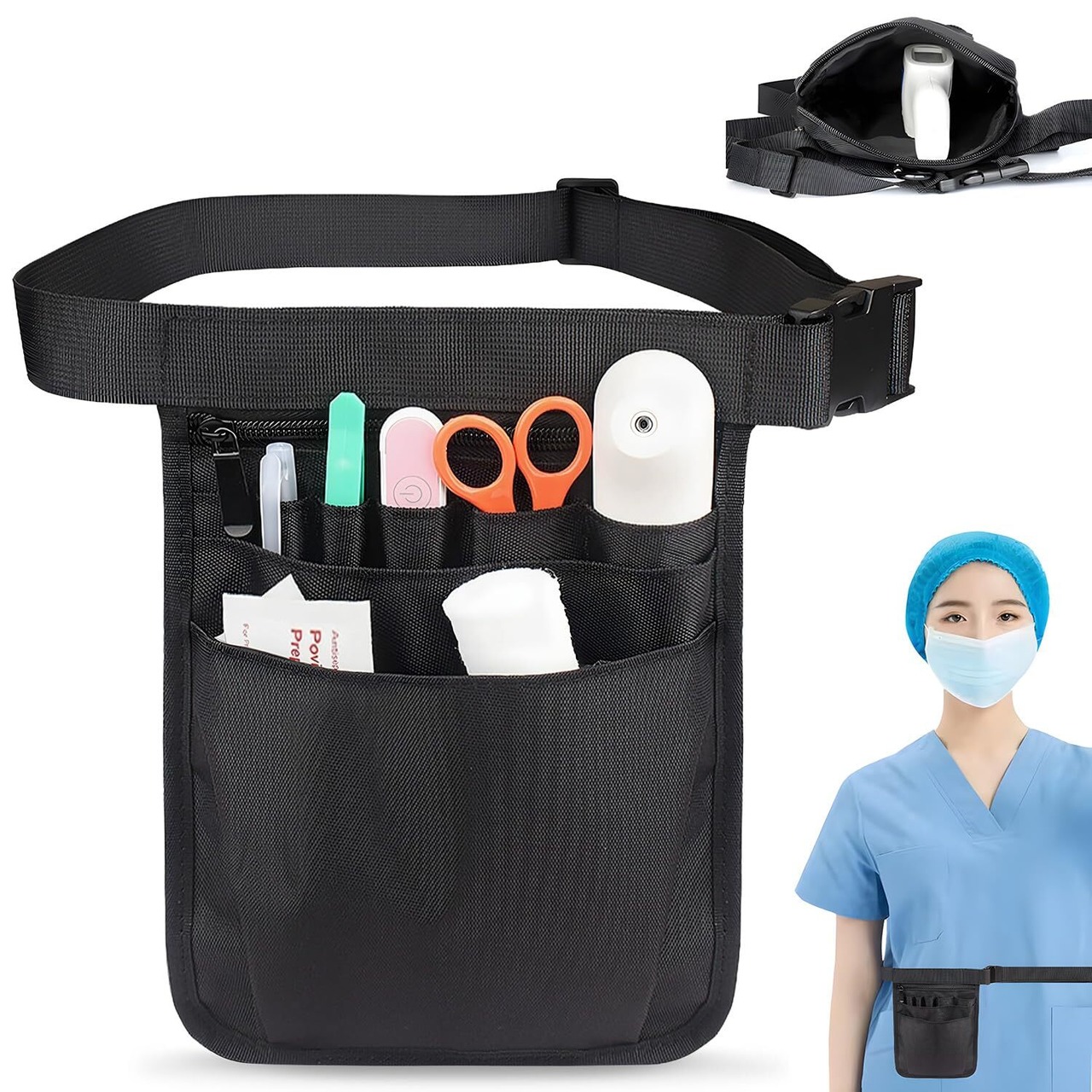 ナースポーチ ウエストポーチ 仕事用 ブラック 看護師 ポーチ 工具ポーチ ナースポーチ ウエストポーチ 作業用ポーチ 多機能ポーチ 文具ポーチ 美容師 ウエストポーチ ベルトポーチ 作業用 小型 防水 ポータブル 耐久性