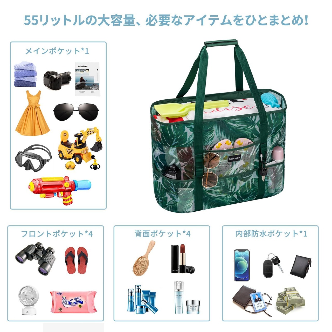 [Yukiyumi] ビーチバッグ プールバッグ 軽量 55L 大容量 防水 防砂 折り畳み可能 収納力 トートバッグ メッシュバッグ ビーチ/温泉/サウナ/ショッピング/水泳/ジム/スパ/旅行用