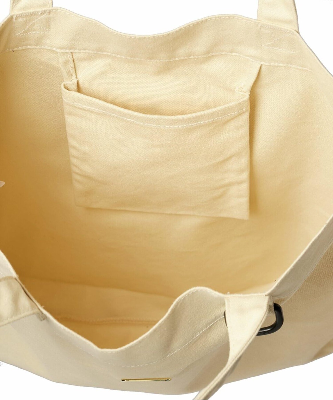 バッグの内側にも小物入れられるポケット搭載 小物を引っかけられるDリングを配置 ゴールドプレートのロゴ W36cmxH42cmxD9cm 20.5L