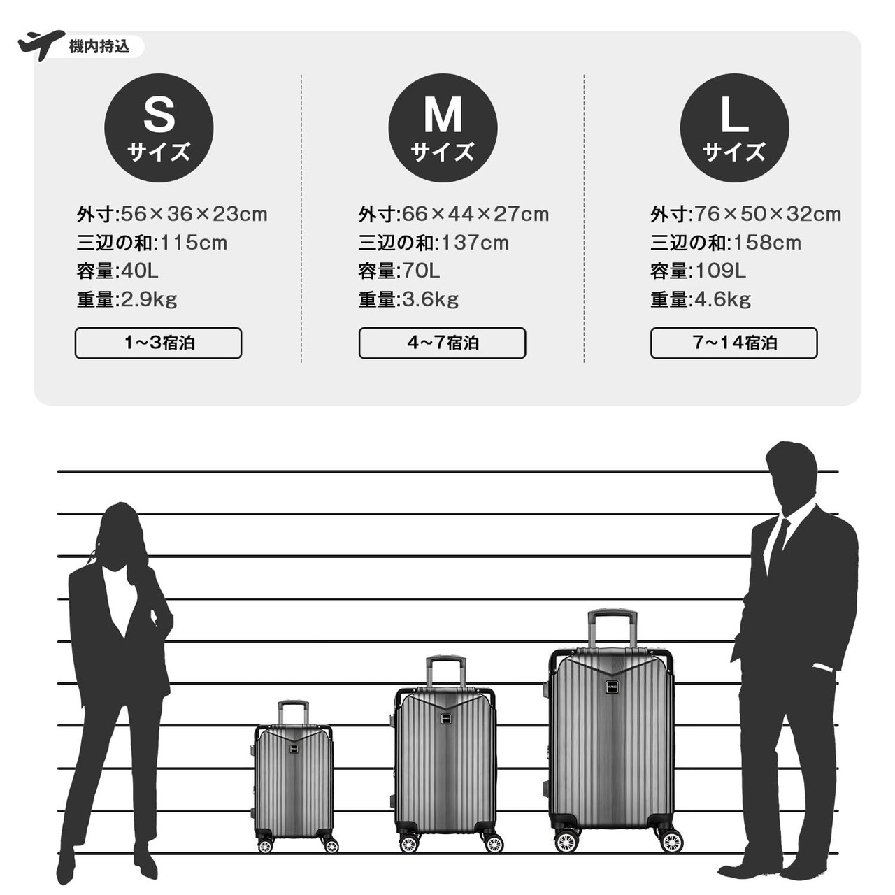 【スーツケースベルト付き&永久】付属したスーツケースベルトはいざという時にスーツケースをしっかり固定でき、より安心。本製品に永久をご提供いたします。永久の詳細は取扱説明書をご参考ください。お届けしたキャリーバッグに初期不良または使用中に何が問題がある場合はにご連絡くださいませ。誠心誠意対応させていただきます。