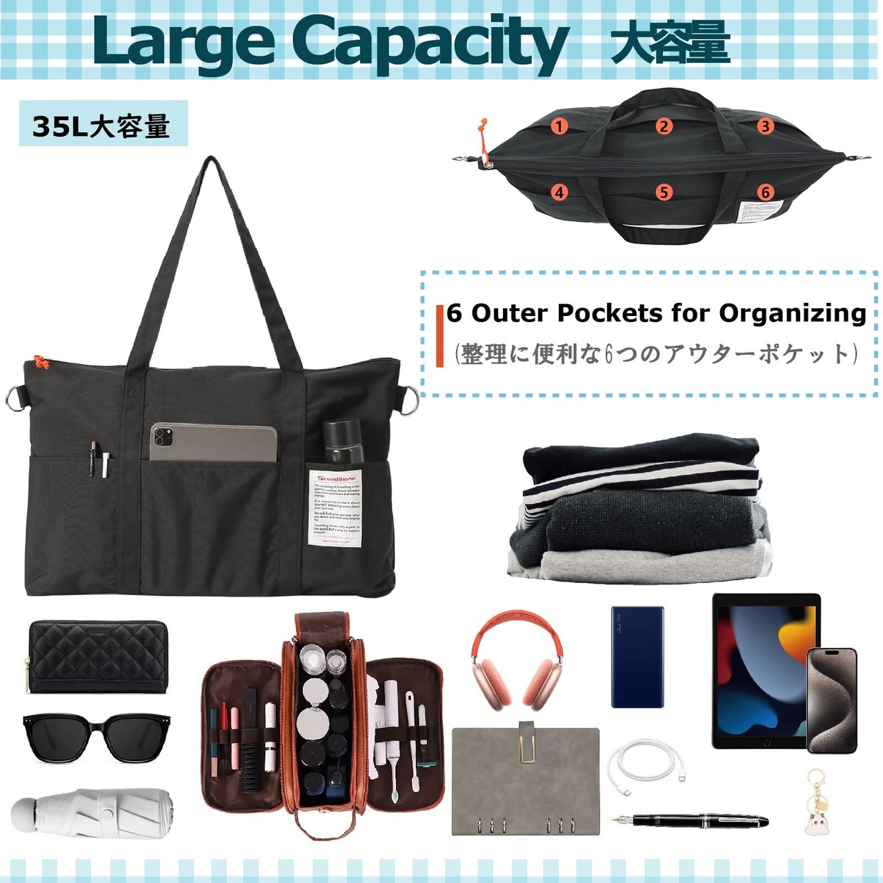 【大容量】サイズ:51×20×35cm、容量:35L。6つの外部ポケットがあり、鍵、傘、ヘッドフォン、携帯電話などの物を置くのに便利で、取り出しやすい。パスポートなどの証明書を収納するための内蔵ポケットも備えています。