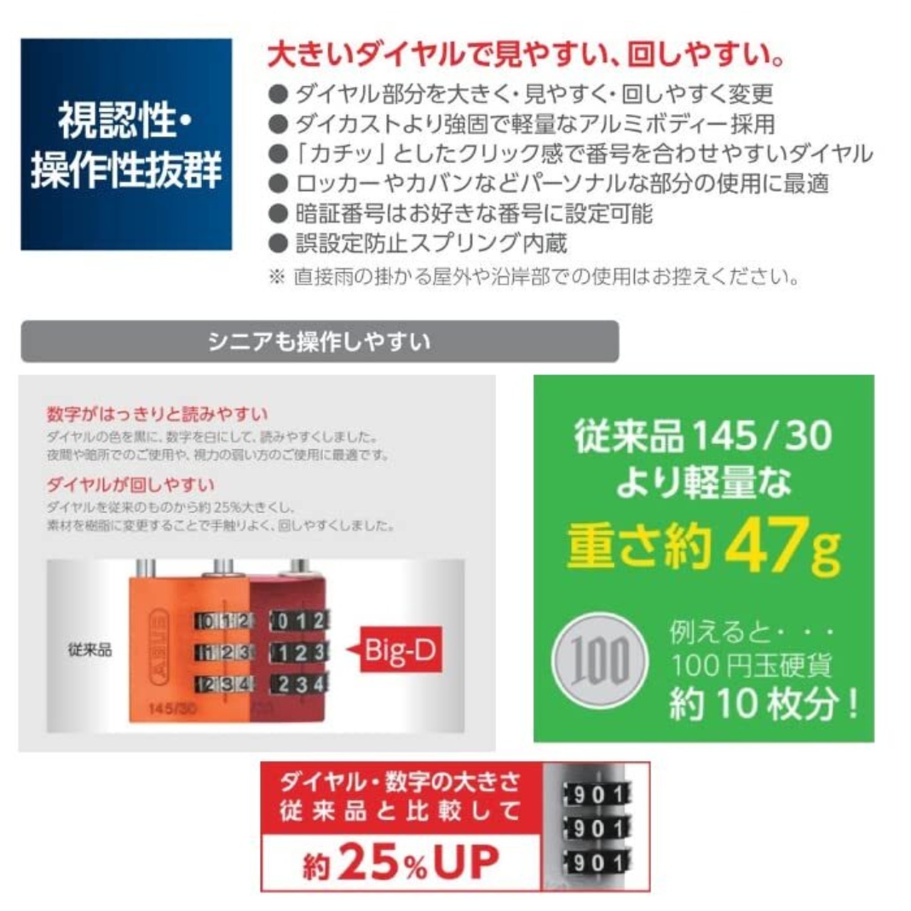日本ロックサービス ABUS 大きなダイヤルで見やすい ビッグダイヤル錠 シルバー 30mm 145-BigD/30