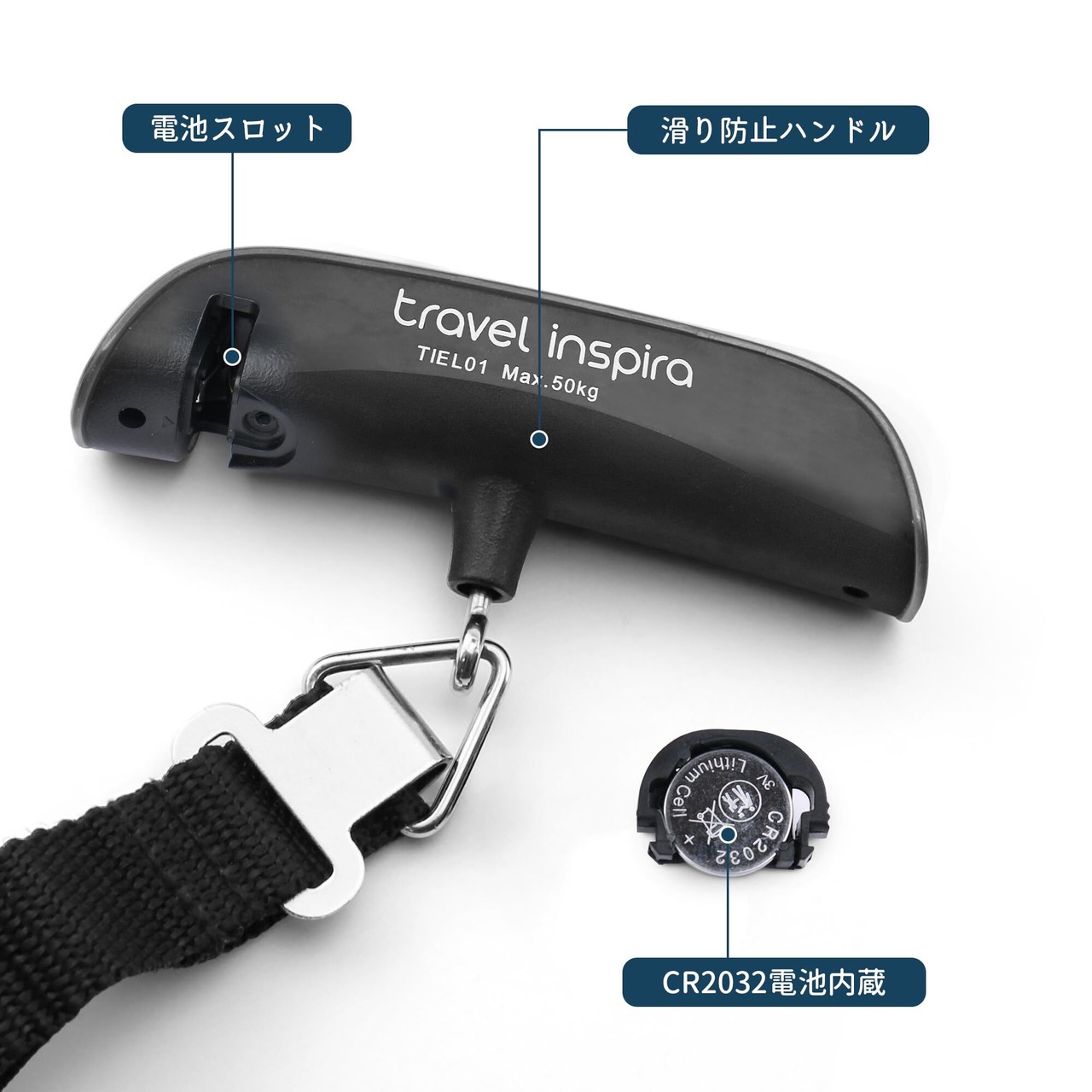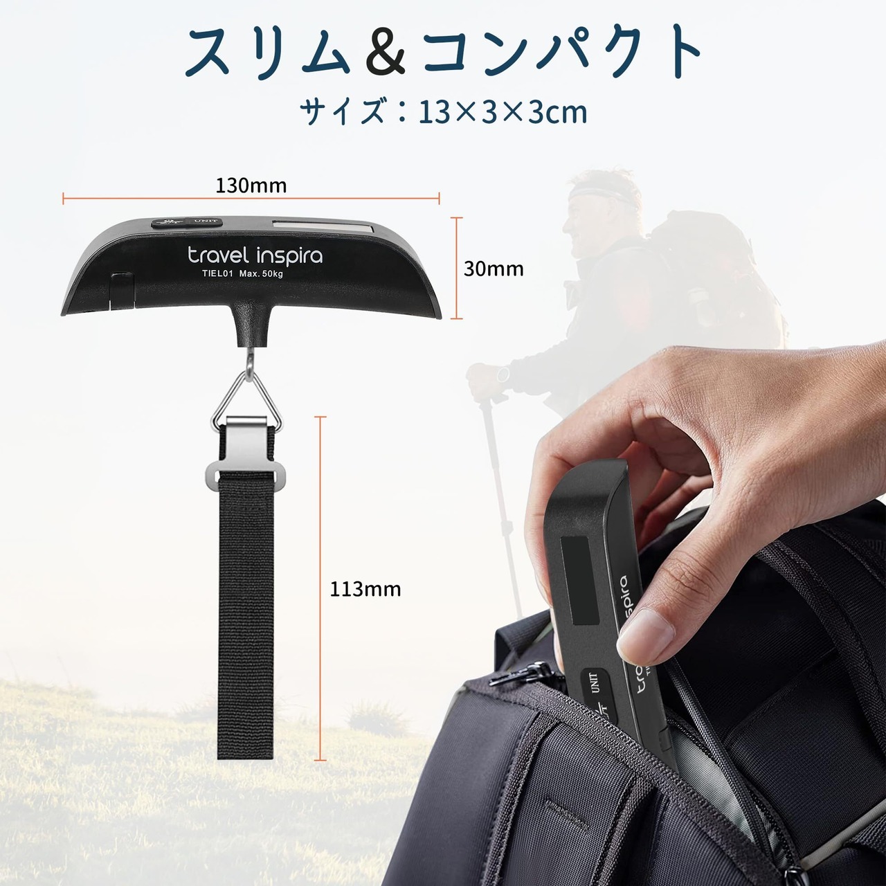 travel inspira 旅行 荷物 はかり ラゲッジスケール スーツケース測り 50kg 旅行用品 便利グッズ デジタル 吊りはかり 軽量 トラベル用品 飛行機 快適グッズ 海外旅行 登山 釣りはかり (ブラック)