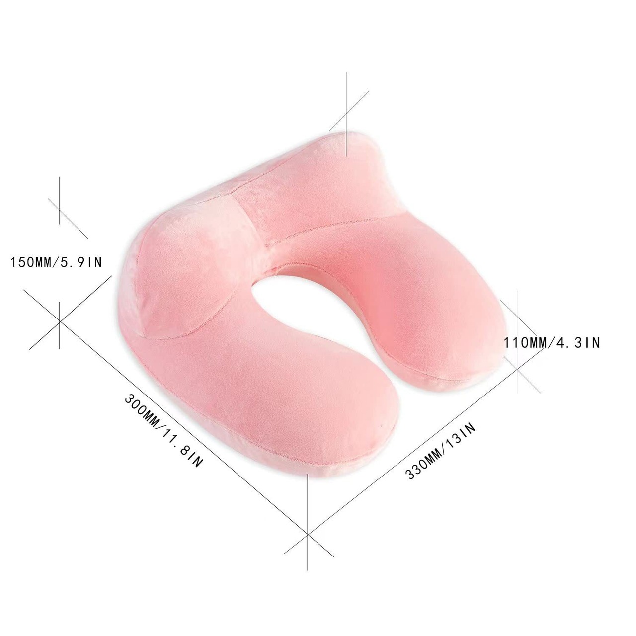 空気注入式トラベルピロー - 100%ソフトベルベットネックサポート 旅行、飛行機、電車、車、オフィス用 コンパクトなキャリーバッグ付き 通気性があり洗濯可能なカバー 大人が眠る方に最適 - ピンク