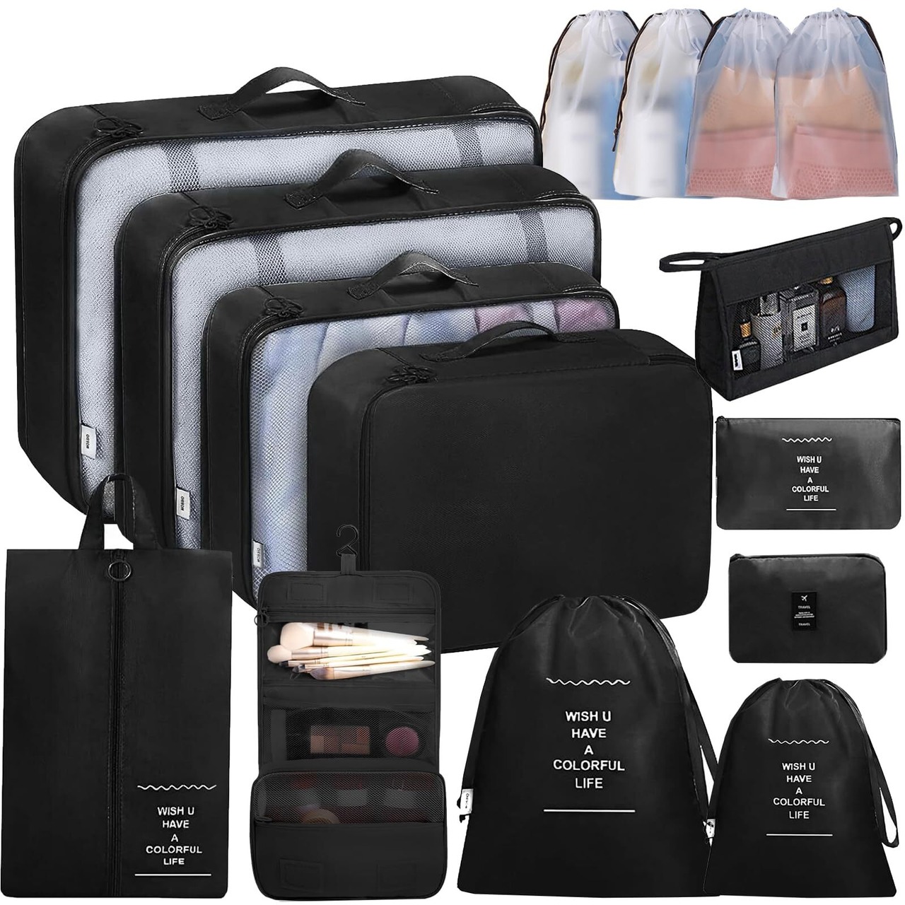 トラベルポーチ 15点セット アレンジケース 旅行用 収納 トラベルポーチ セット 可愛い パッキング パッキング ポーチ 出張 整理 便利グッズ 衣類 靴用 下着収納 下着/洗面用具/シューズ/小物入れ 旅行用便利グッズ 旅行用ポーチ トラベルポーチ(ブラック)