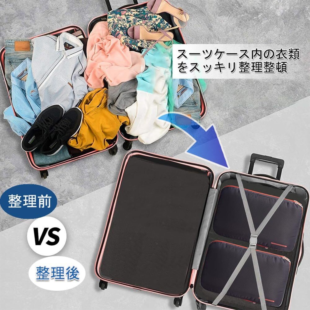 【50%スペース削減】 圧縮バッグに衣類を入れた後、圧縮ジッパーを閉めることでスーツケース内のスペースを約50%節約することができます。スーツケース内がスッキリ整理整頓されます。収納が苦手な方でも簡単に整理して綺麗に旅に出ることができます。ストレスフリーパッキングを実現!