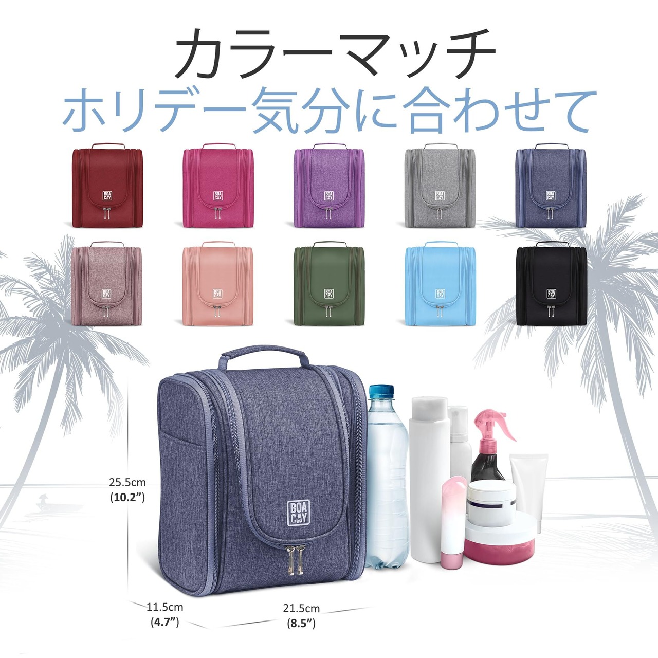 化粧ポーチ、化粧品やアクセサリーのオーガナイザーが必要なら、Boacayのトイレタリーバッグがおすすめです。 多機能で、金属製ジッパーの引き手がついており、高品質の素材だけで作られています。