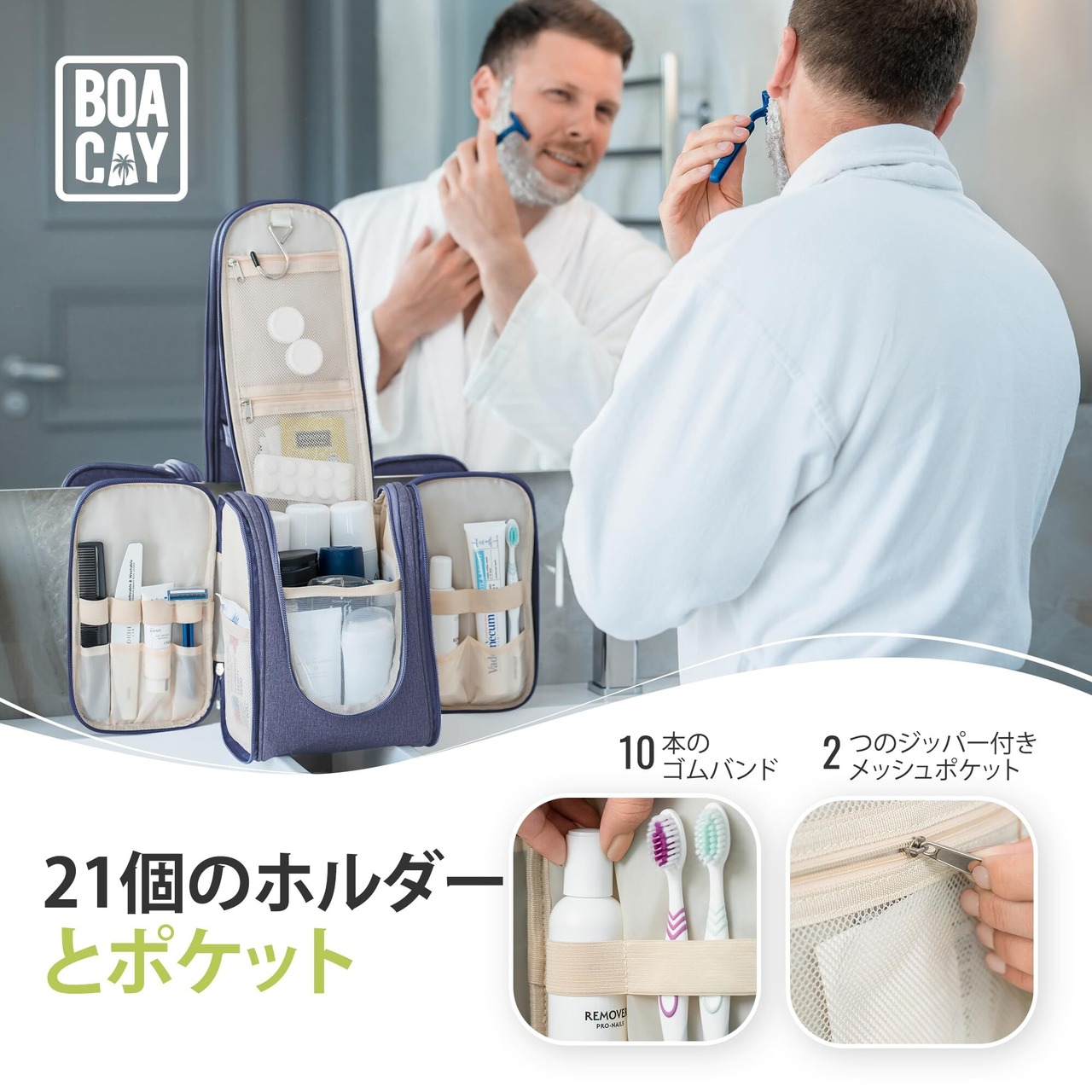 [BOACAY] 女性と男性用の吊り下げ旅行トイレタリーバッグ、メイクアップバッグ、バスルームとシャワー用整理キット アクセサリーや化粧品、旅行必需品用