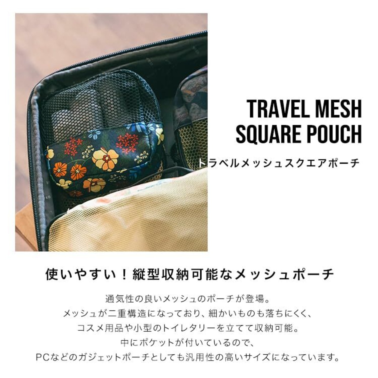 KiU キウ トラベルメッシュスクエアポーチ TRAVEL MESH SQUARE POUCH メンズ レディース 男女兼用 メッシュポーチ コスメポーチ ガジェットポーチ 軽量 通気性 出張 旅行 トラベル サイケデリックフラワー K369-169