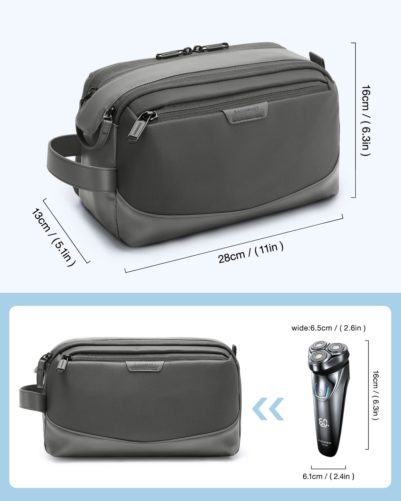 BAGSMART トイレタリーバッグ 大容量 バスルームポーチ 携帯用 洗面用具入れポーチ トラベルポーチ 化粧ポーチ 旅行収納 防水 お風呂 軽量 自立 出張 旅行 トラベル おしゃれ メンズ グレー
