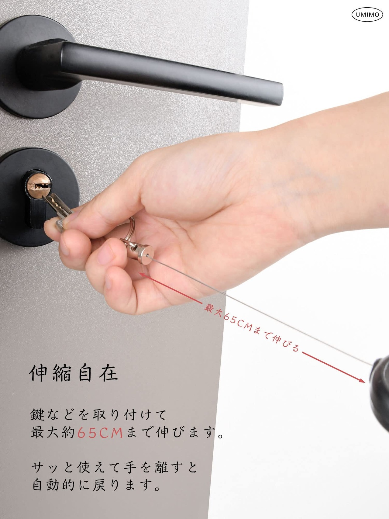 UMIMO リールキーホルダー カラビナ付 キーリール 金属ワイヤー 最長65cm 伸びる 紛失防止 2個セット 安心の12ヶ月品質