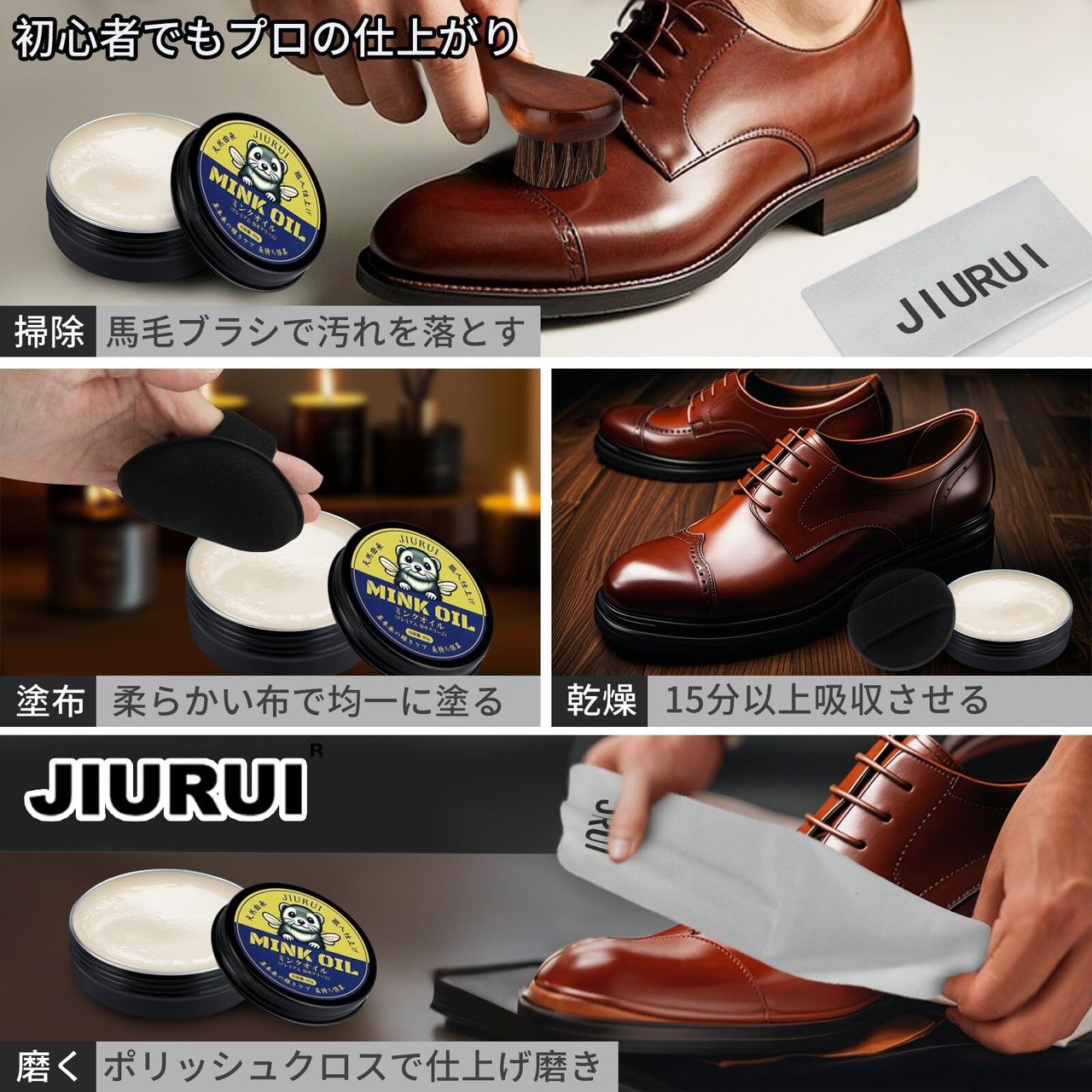 [JIURUI] ミンクオイル 革クリーム 革靴 手入れ レザークリーム 無色 磨きクロス付き 靴磨き保革 レザーケア 栄養 保湿 防水 革バッグ 革ジャン 革ソファー 革靴 革グローブ 革ブーツ対応 60g