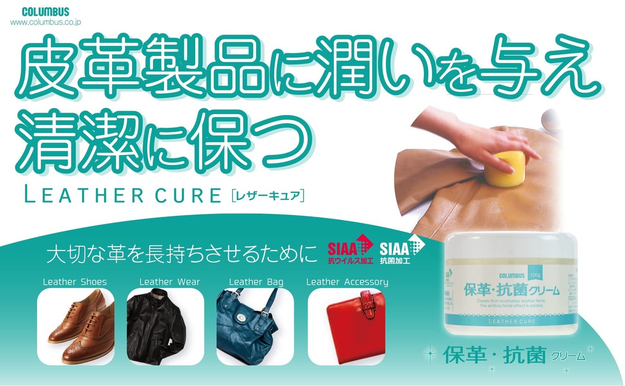 [コロンブス] 革製品のお手入れ 大容量 デリケートクリーム レザーキュア 保革 抗菌 レザークリーム 溶剤不使用/塗布用スポンジ付き ムショク 100g