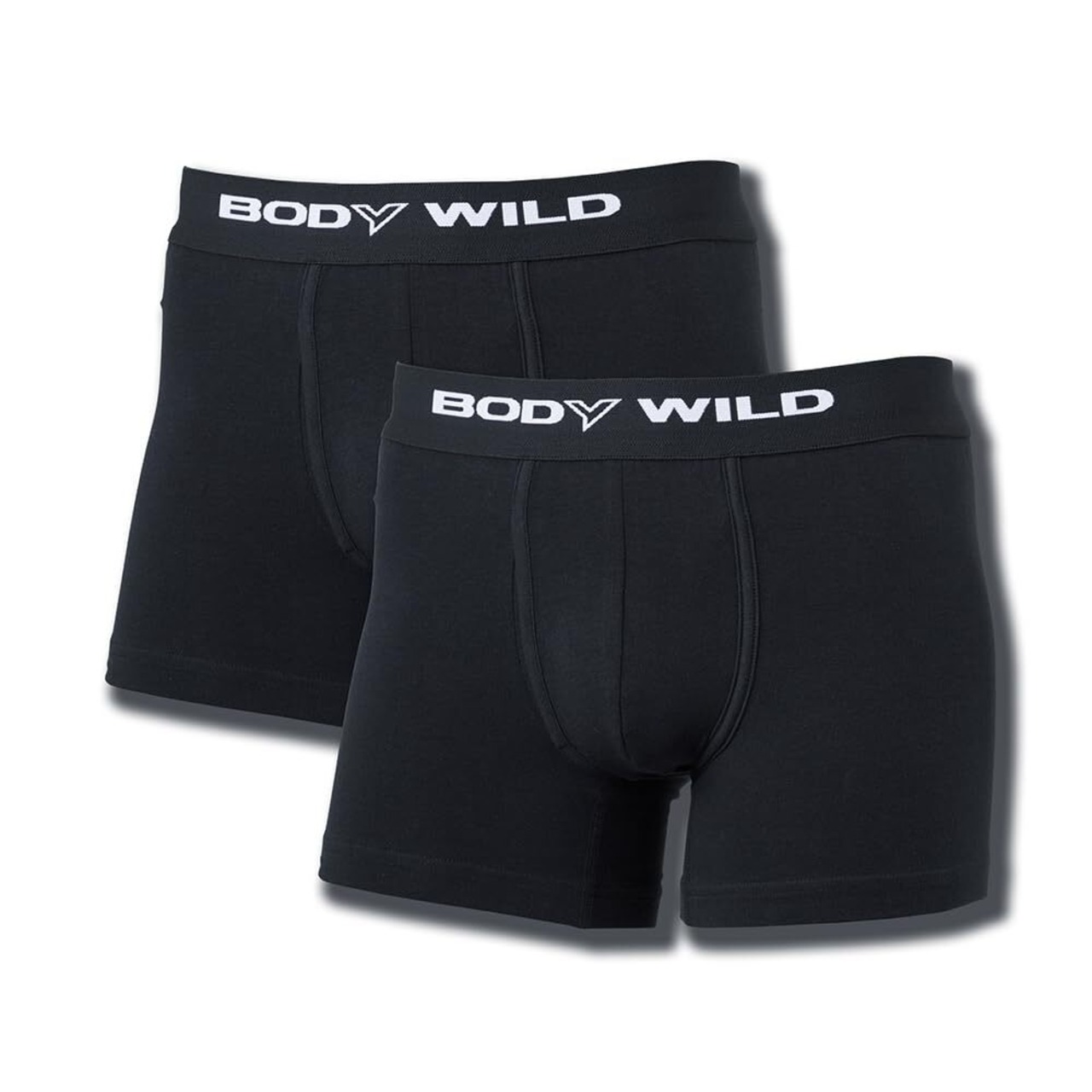 太目のブラックバンドと「BODY WILD」のビッグロゴ! ! 便利な前あきの機能はそのままに、開く部分をスッキリとした形状にした、綿混素材のボクサーブリーフ。