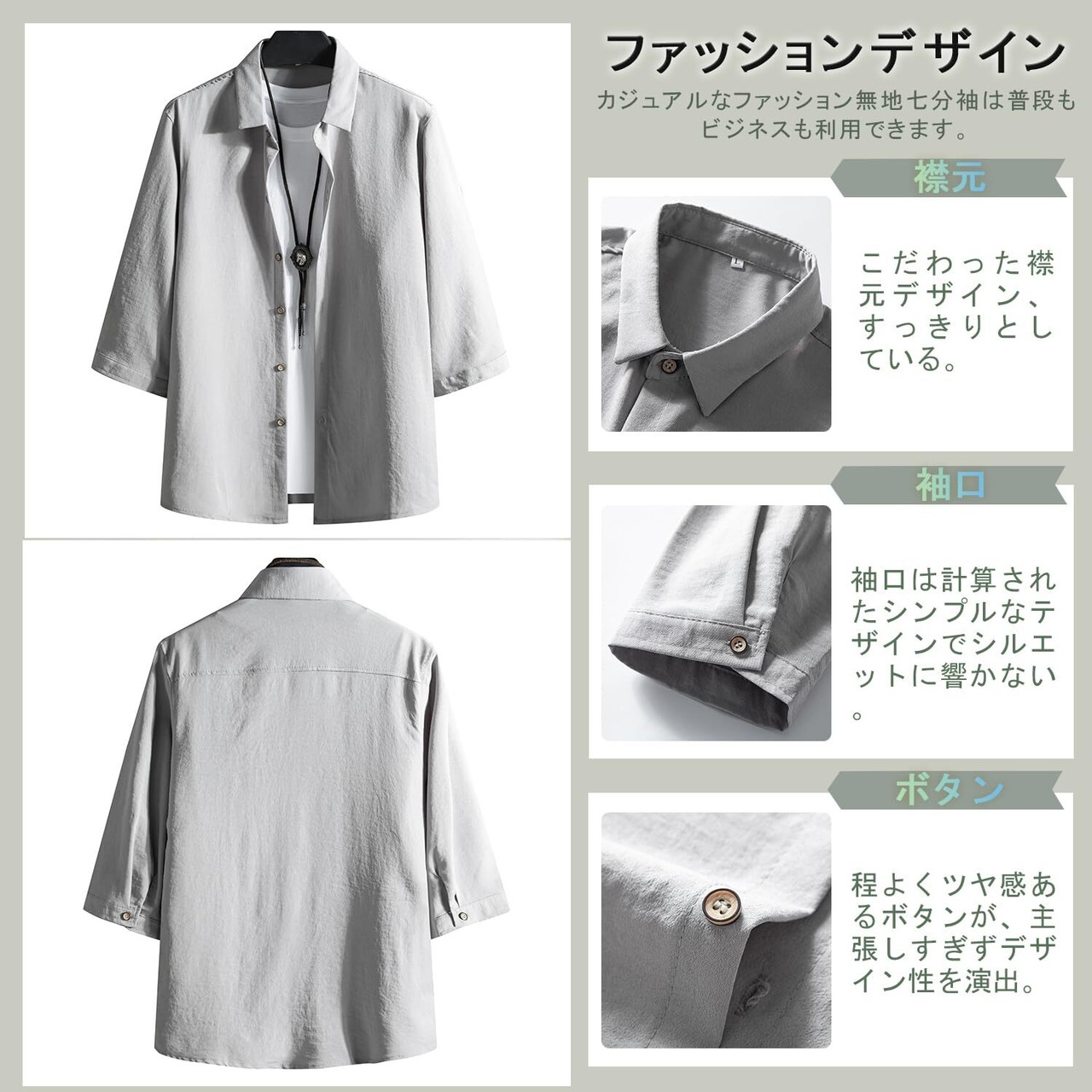 [FUZHIHUA] シャツ メンズ 七分袖 夏服 半袖 おしゃれ カジュアル ゆったり 無地 大きいサイズ カジュアルシャツ お洒落 トップス 軽い 通気 柔らかい 人気 服