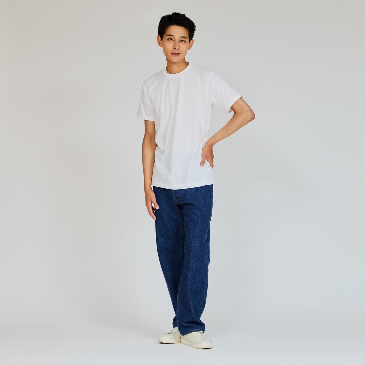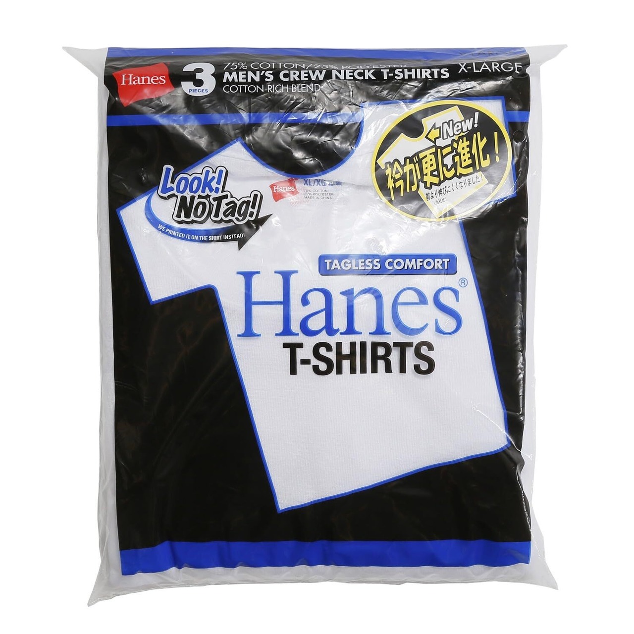 1947年、「毎日着る身近なアイテムだからこそ、リーズナブルな価格でまとめ買いしたい」という要望に応え、誕生したHanes®(ヘインズ)マルチパック。その着心地の良さが高く評価され、メンズアンダーウェアで不動の地位を確立しました。マルチパックの代表アイテム「3P Pack T-Shirt(3枚入りパックTシャツ)」、青ラベルクルーネックTシャツです。袖口と裾口は表からは縫い目が目立ちにくいブラインドステッチ仕様。コットンとポリエステルの混紡生地を使用しているので洗濯後も型くずれしにくく、乾きやすく、独特のドライな肌触りが魅力。脇に縫い目のない丸胴編みによるストレスフリーの心地良さ、着丈長めのボックスシルエットも特長です。