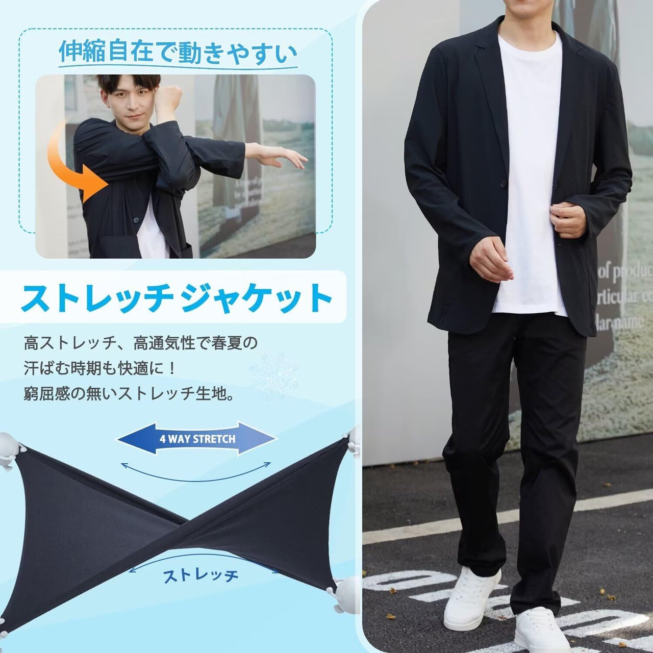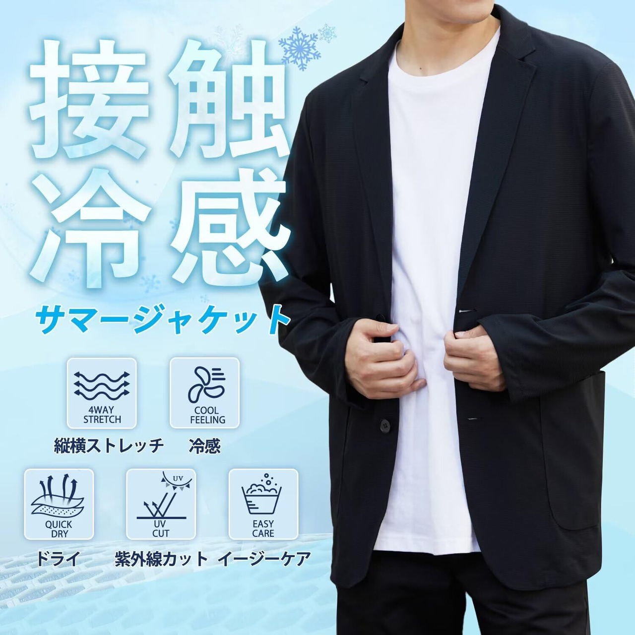 [VICALLED] テーラードジャケット メンズ 夏 UVカット サマージャケット 接触冷感 通気 冷感ジャケット 軽量 薄手 ひんやり 吸汗速乾 夏服 ストレッチ 耐シワ性 ビジネス カジュアル