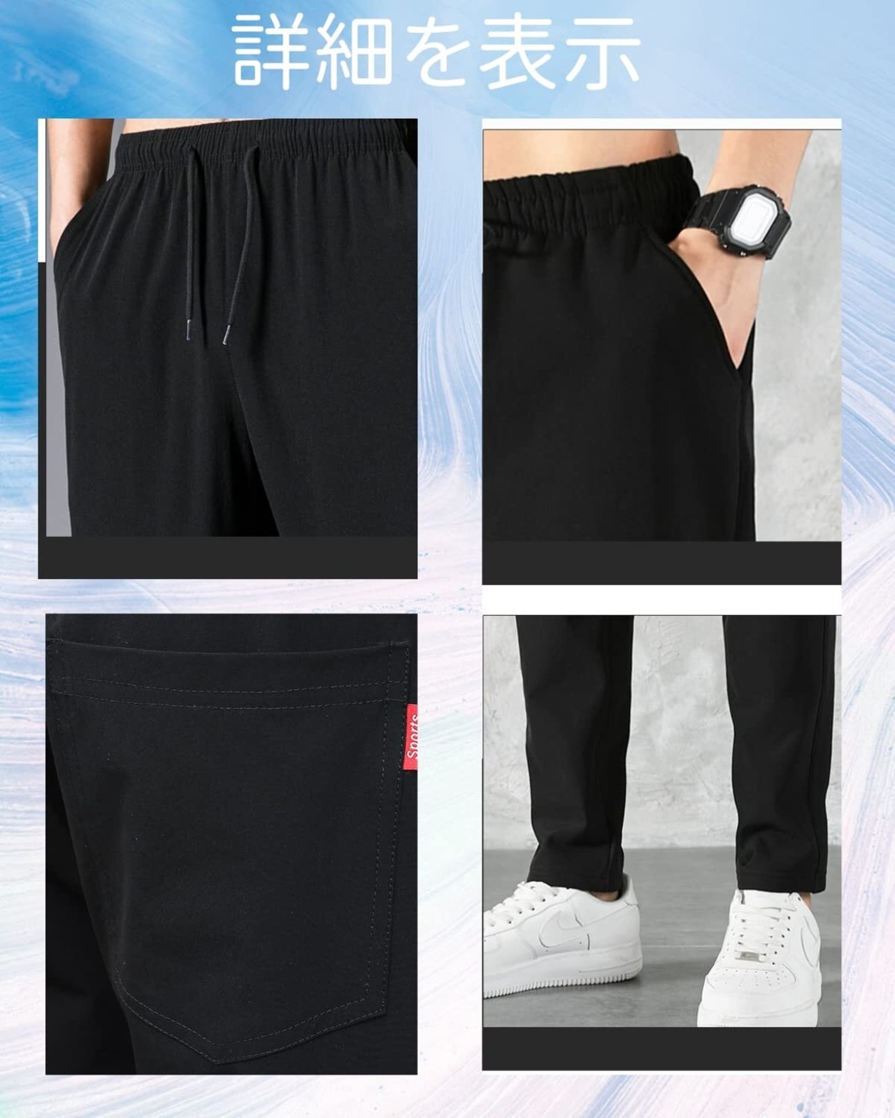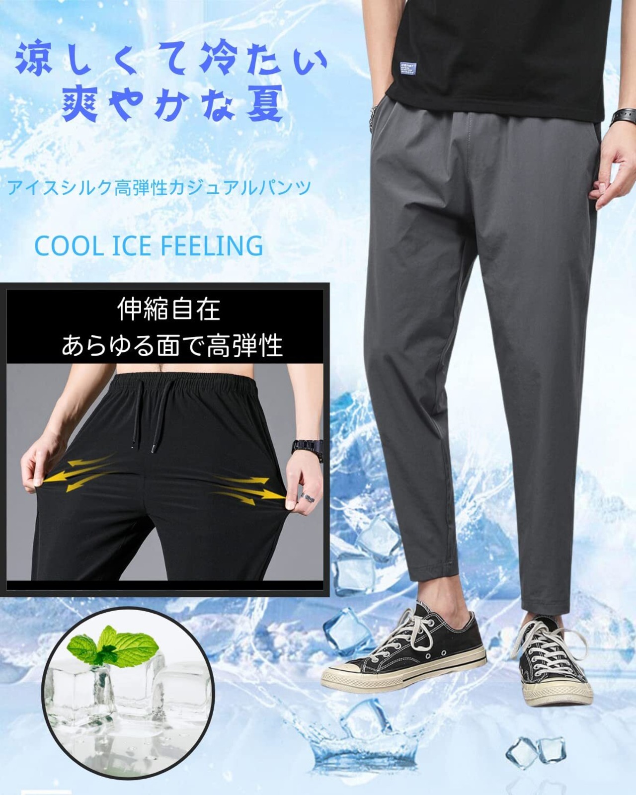 [foveitaa] 接触冷感 パンツ メンズ 9分丈 夏 ゆったり ストレッチ 薄手 イージーパンツ 大きいサイズ アイスシルク 清涼 涼しい 涼感 通気性 吸水速乾 快適 ボトムス ズボン エアパンツ
