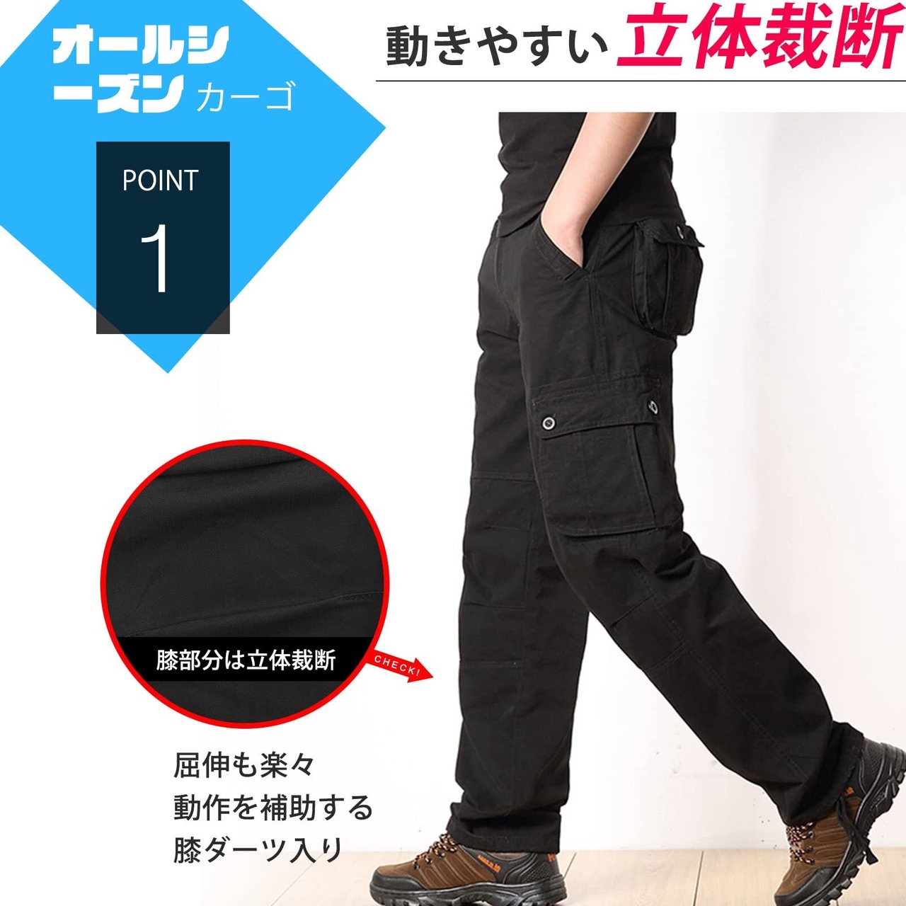 [Hilarocky] カーゴパンツ メンズ ズボン ワークパンツ ゆったり 大きいサイズ 多機能 ロングパンツ 綿 無地