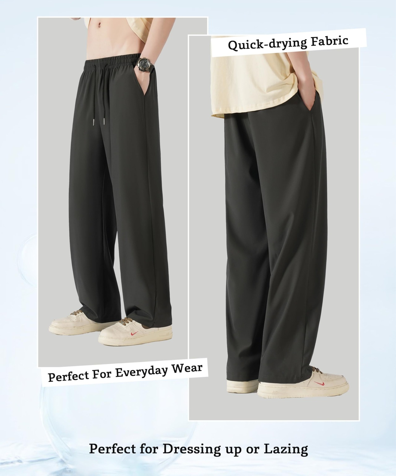 [hxsonw] ズボン メンズ ロングパンツ 涼しい 夏服 ゆったり ストレッチ 速乾 ストレートパンツ カジュアル 薄手 軽量 接触冷感 大きいサイズ トラウザーズ アイスシルクパンツ 夏