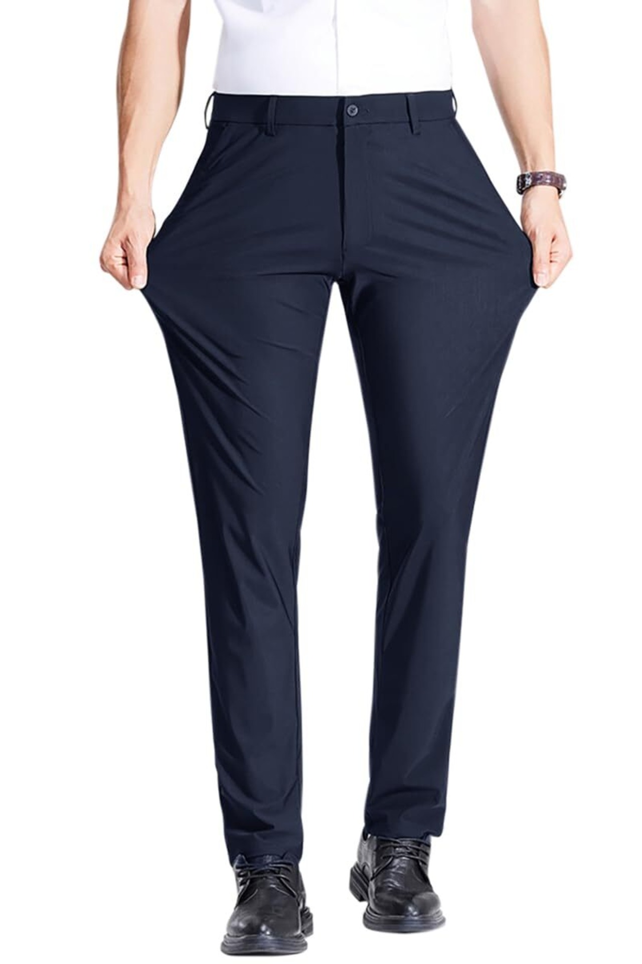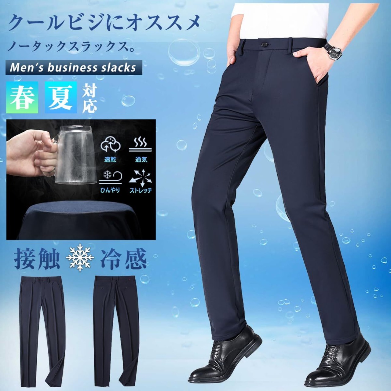 [BryQrvy] メンズ スラックス スーツパンツ 接触冷感 ストレッチ ノータック ビジネス パンツ ズボン 通勤 仕事着 ウォッシャブル 薄手 通気 春夏 春服 夏服