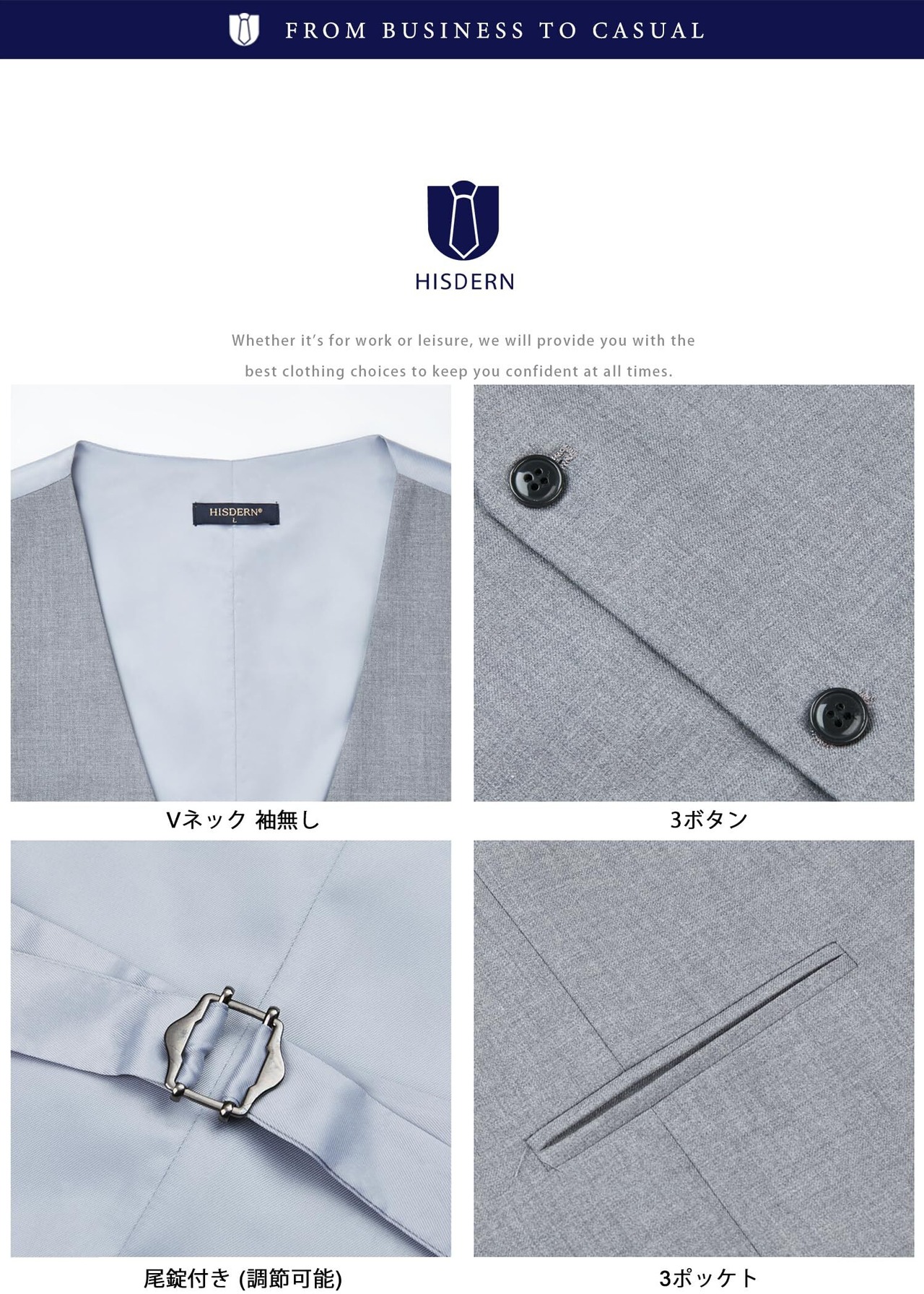 [HISDERN] V-03 ベスト メンズ スーツ ベスト 結婚式 光沢 3ボタン 3ポケット スリム Vネック 尾錠付き ビジネスチョッキ フォーマル サラリーマン 紳士 大きいサイズ