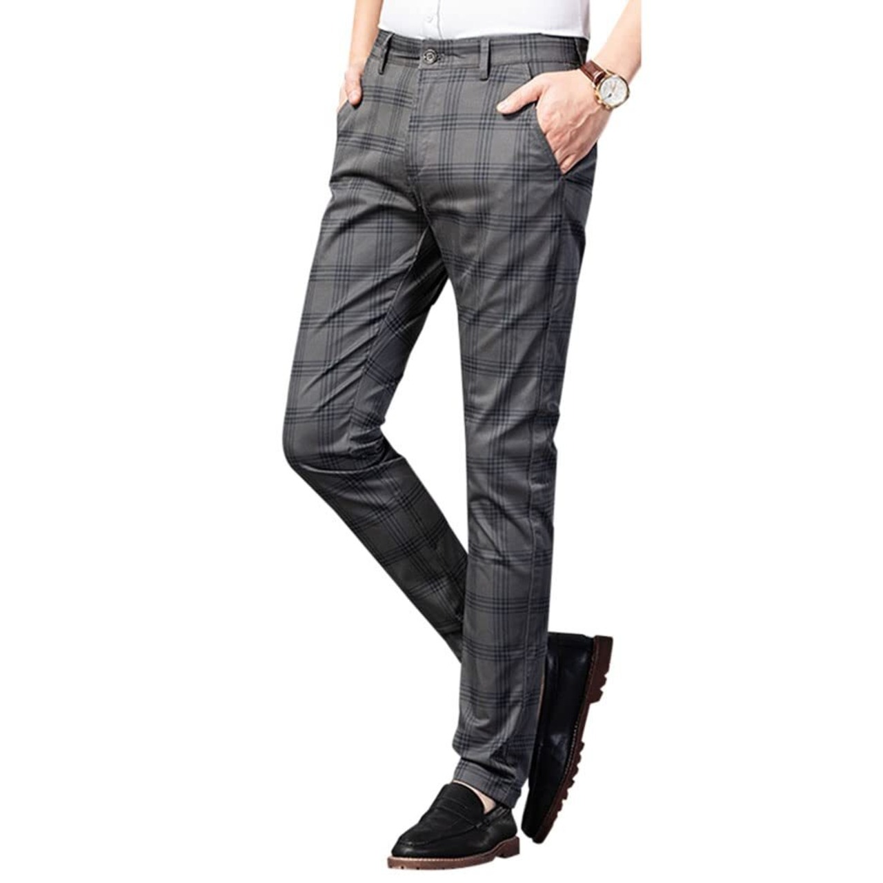 [FOMANSH] スラックス メンズ ノータック ロングパンツ スリム ビジネス チェック 通勤 スーツパンツ