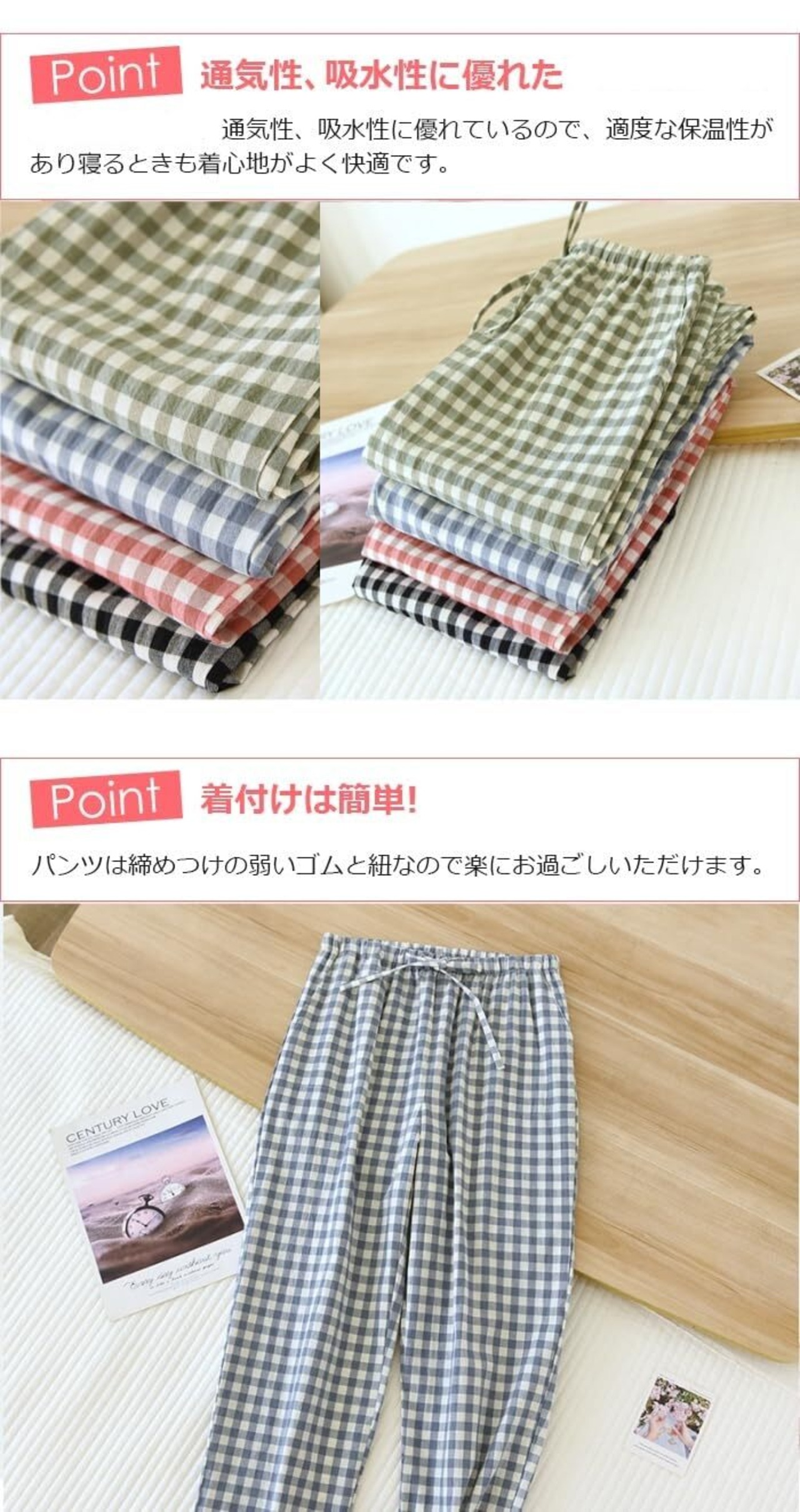 チェック柄&ベージックなデザインで、お手持ちのトップスに合わせやすい使えるコットンのロングパジャマ下です。普段着、部屋着 寝間着、ホテル、旅行など多様にお使いいただけます。