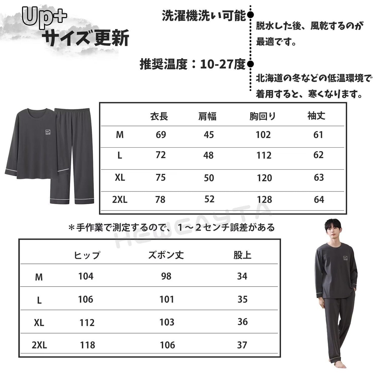 [HEWEAYTA] パジャマ メンズ 長袖 春夏秋 - ルームウェア 大きいサイズ 部屋着 上下セット 薄手 40-90KG ゆったり 綿 吸汗 通気 肌に優しい