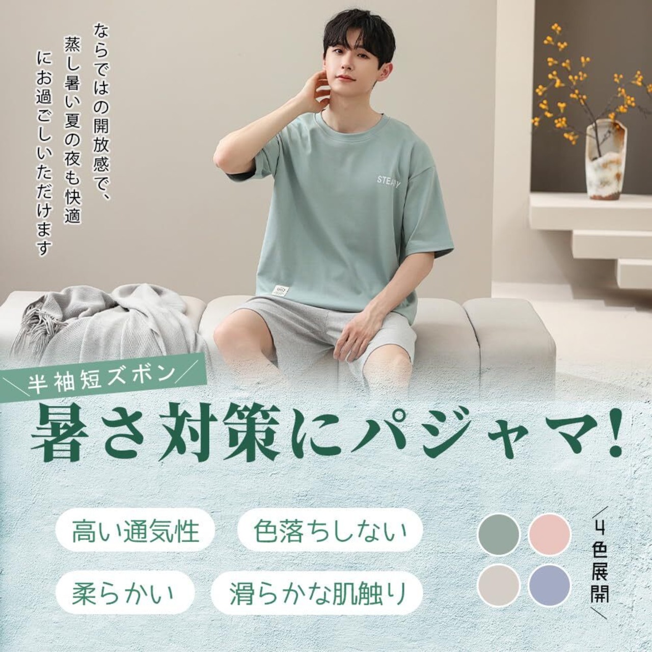 [Akihee] パジャマ メンズ 夏 半袖 2点セット ルームウェア 涼感 ゆったり 吸汗通気 肌に優しい 寝間着 部屋着 ポケット付き ストレッチ 柔らかい 快適 薄手涼感 夏大活躍