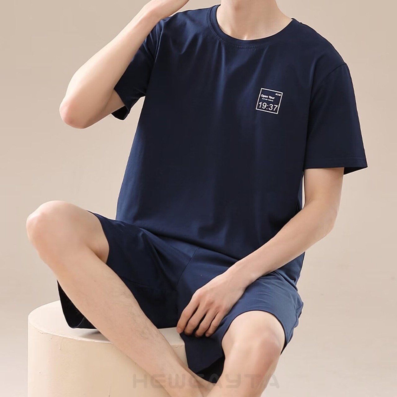 [HEWEAYTA] パジャマ メンズ 夏 半袖 - ルームウェア 上下セット 半袖ショートパンツ 部屋着 薄手 綿 軽い 吸汗