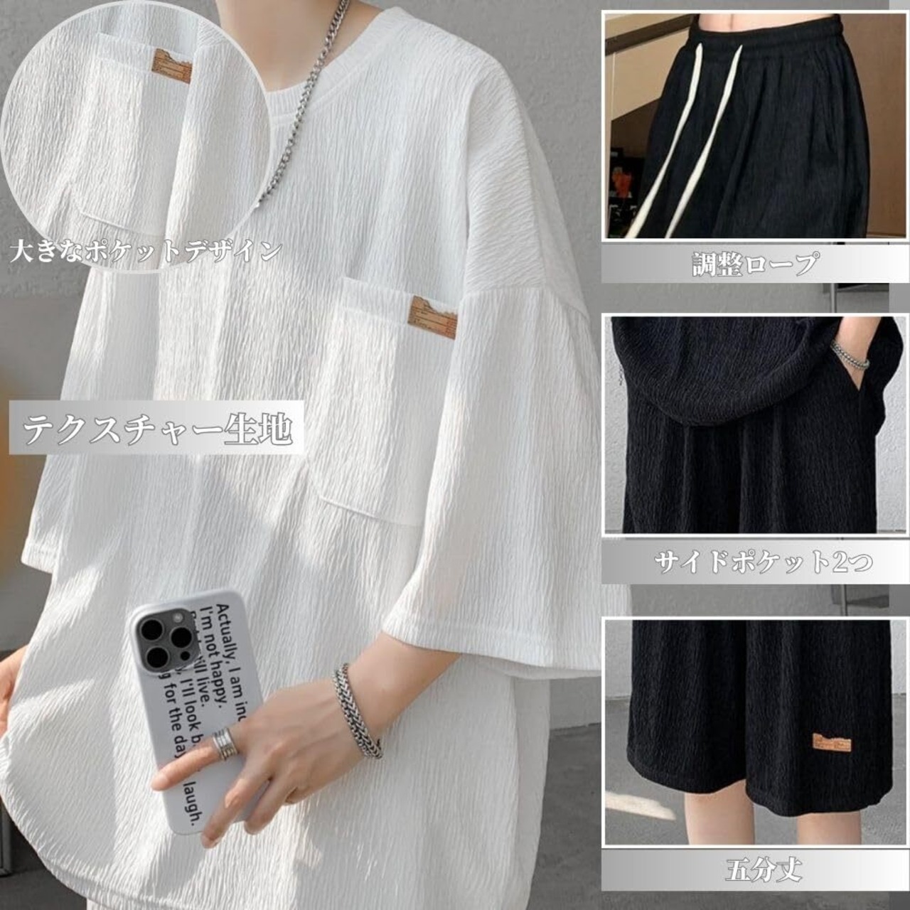 [Aaronlive] 上下セット メンズ 半袖 Tシャツ セットアップ ジャージ 夏服 大きいサイズ ショットパンツ 2点セット カジュアル おしゃれ 通気性 薄手 快適 涼しい ルームウェア メンズ 夏