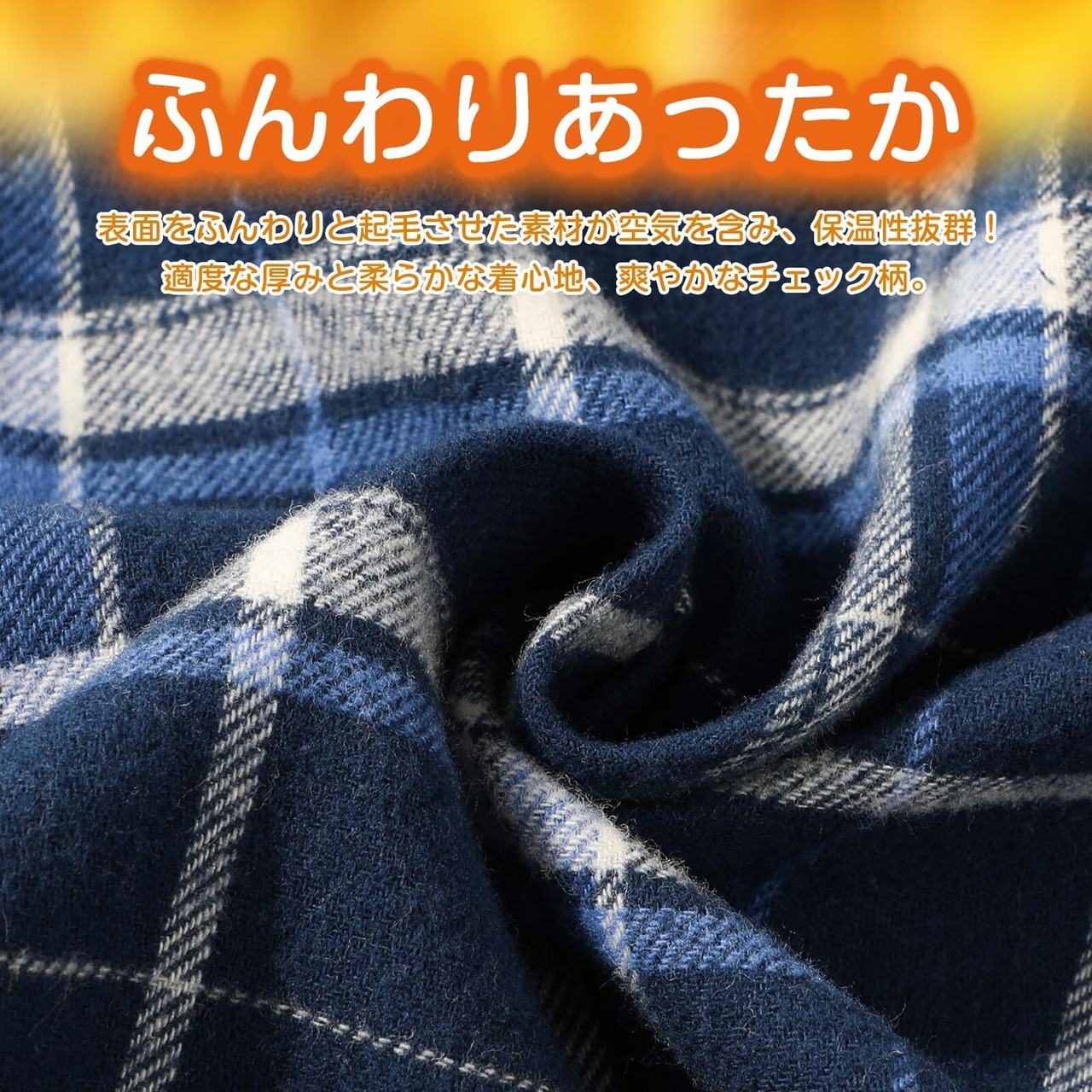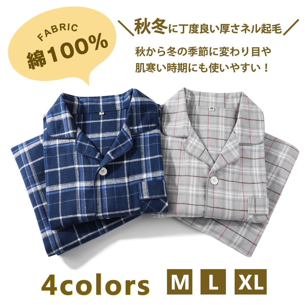 [ヒルトップクラウド] パジャマ メンズ 綿100% 長袖 ルームウェア 前開き 上下セット チェック柄 ネル 起毛 ゆったり あったか 吸汗 通気 柔らか 紳士 入院着 部屋着 春 秋 冬