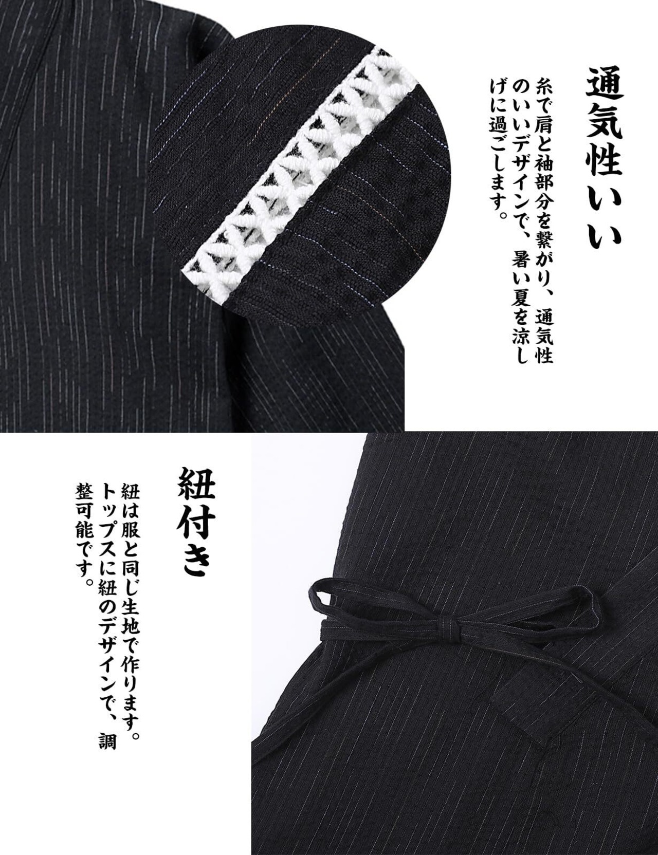 【通気性】綿100%の生地で作りました和風セット、通気性がいく、着心地もいいです。見た目にも涼しく透け感があるデザインで、暑い日本の夏を涼しく感じさせてくれる。