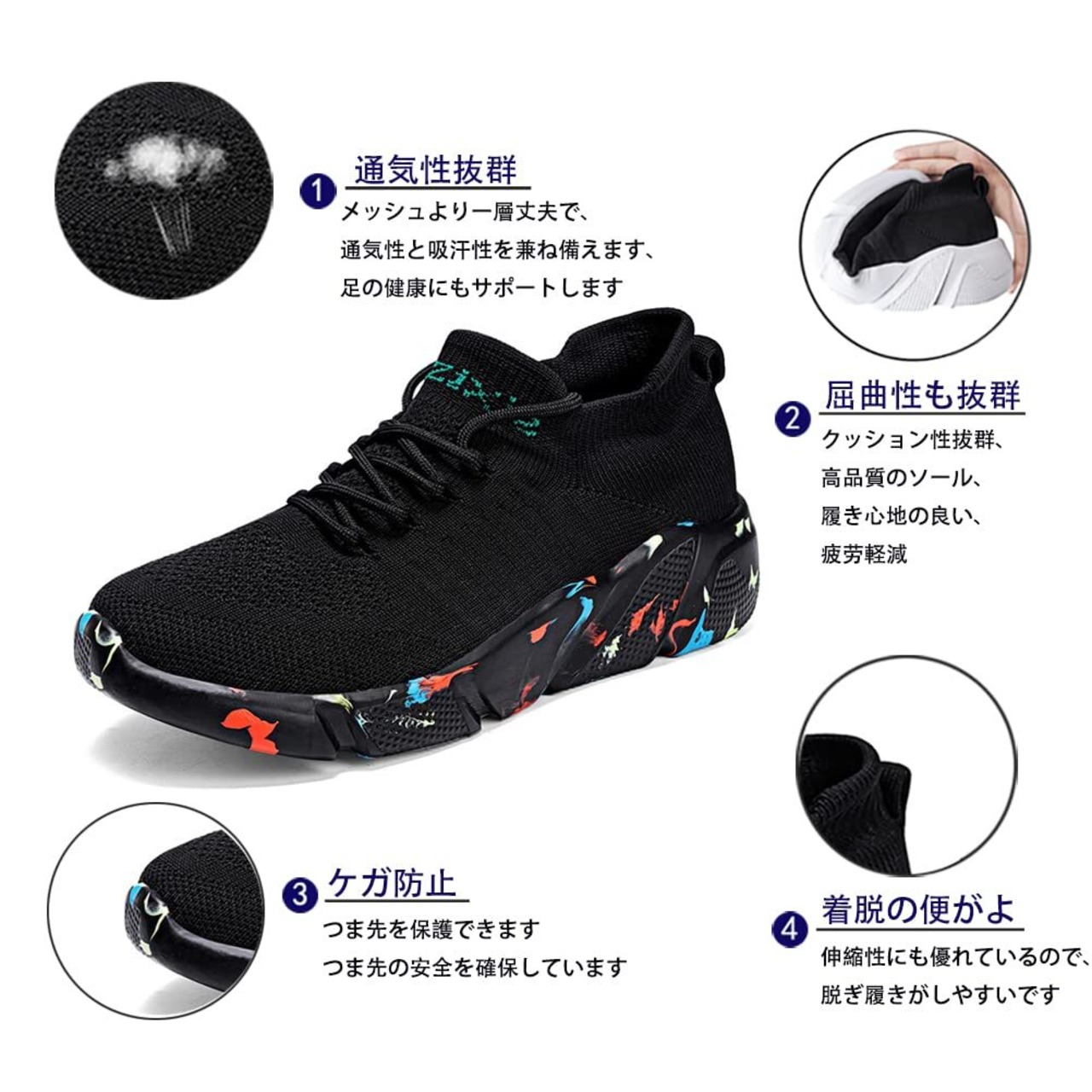 【着脱簡単/超軽量】一体型の履き口が、伸縮性にも優れているので、着脱の便がよい。靴ひもは緩さを調節できて、とても良い貼り合わせができます、フィット感良し。3D縫製技術で一体型のアッパーが、非常に軽い素材で作られているので、靴全体は軽くて、緩衝の効果は良いです。運動靴は履き心地がいい