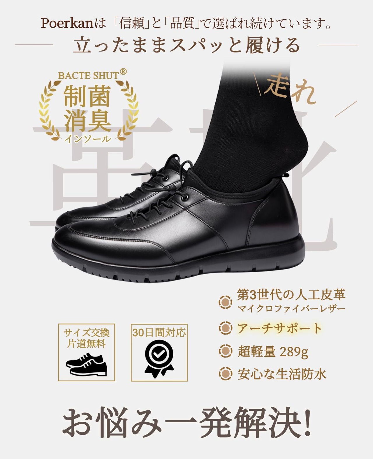[Poerkan] 【理学療法士監修】走れる ビジネスシューズ メンズ 超軽量 ビジネス スニーカー 革靴 制菌・消臭&アーチサポート機能インソール搭載 歩きやすい ローファータイプ ウォーキングシューズ 24.5cm~28.5cm